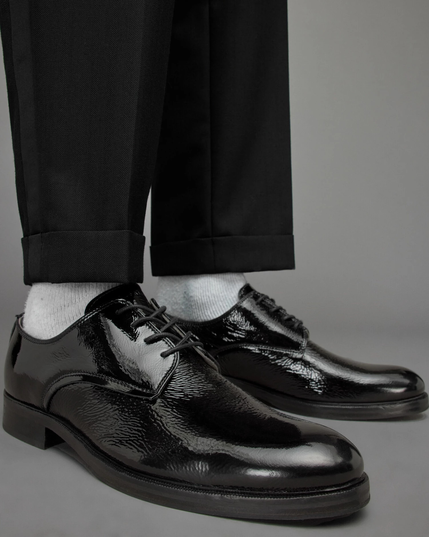 Smarten up with the Apollo Derby Shoes. The patent leather is made to shine. A classic silhouette on a hand-built sole.