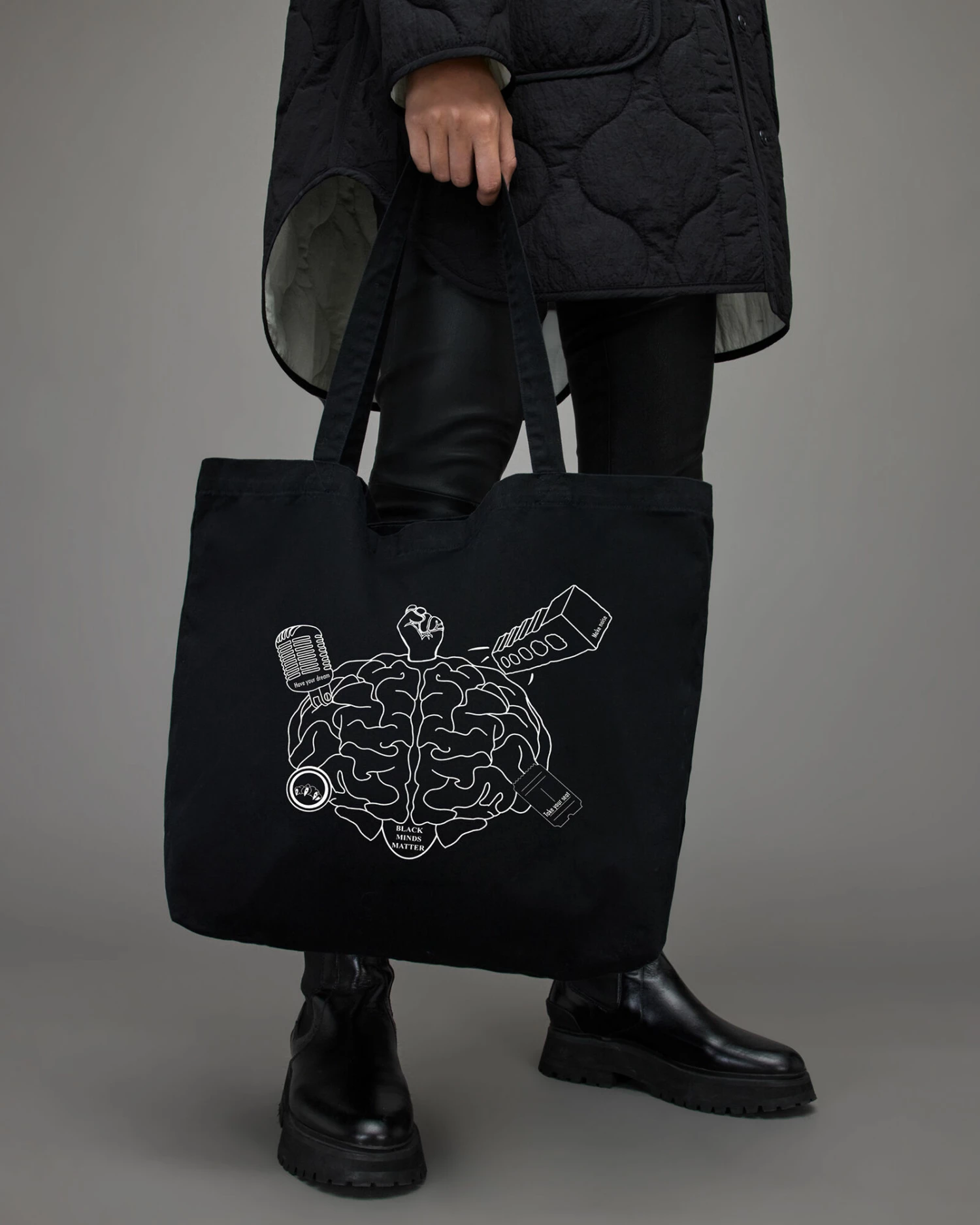 Our Black Minds Matter tote features a hand-drawn design created by Mason Kane Thomas, who works in our Meadowhall store in Sheffield. The design celebrates great minds that have shaped black history. All profits from the sale of this tote bag will be donated to Black Minds Matter – a UK charity (no 1193036) thats supports black mental health by providing access to black therapists.