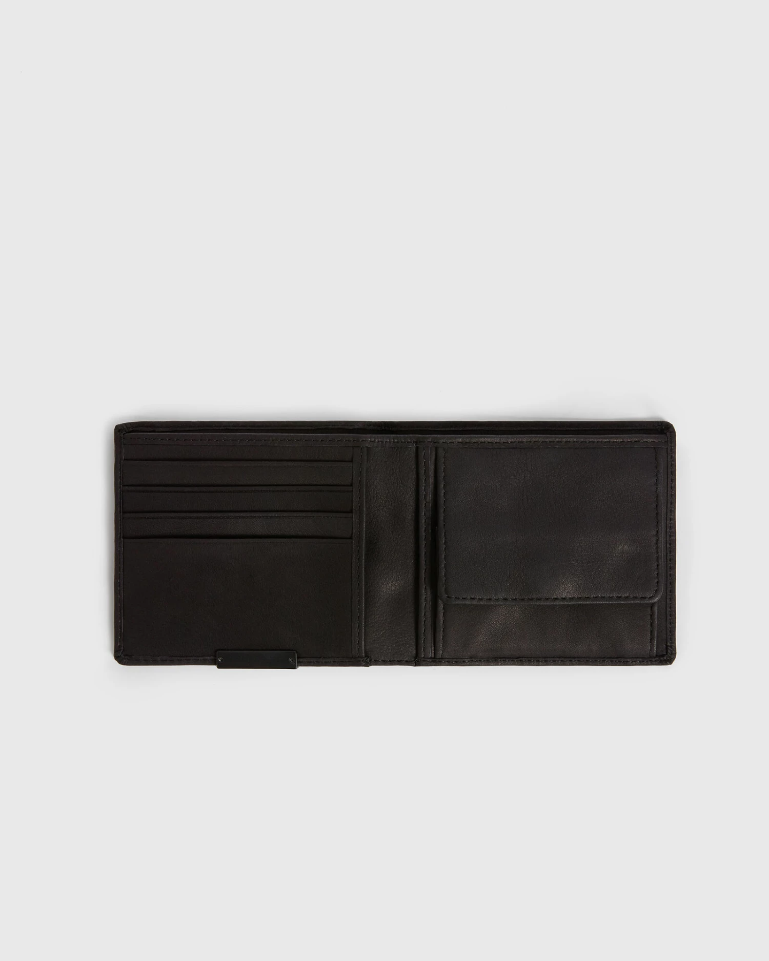 Keep your money safe. The Blyth Wallet is crafted from refined leather with multiple compartments – an AllSaints metal plaque completes the minimalist deisgn.