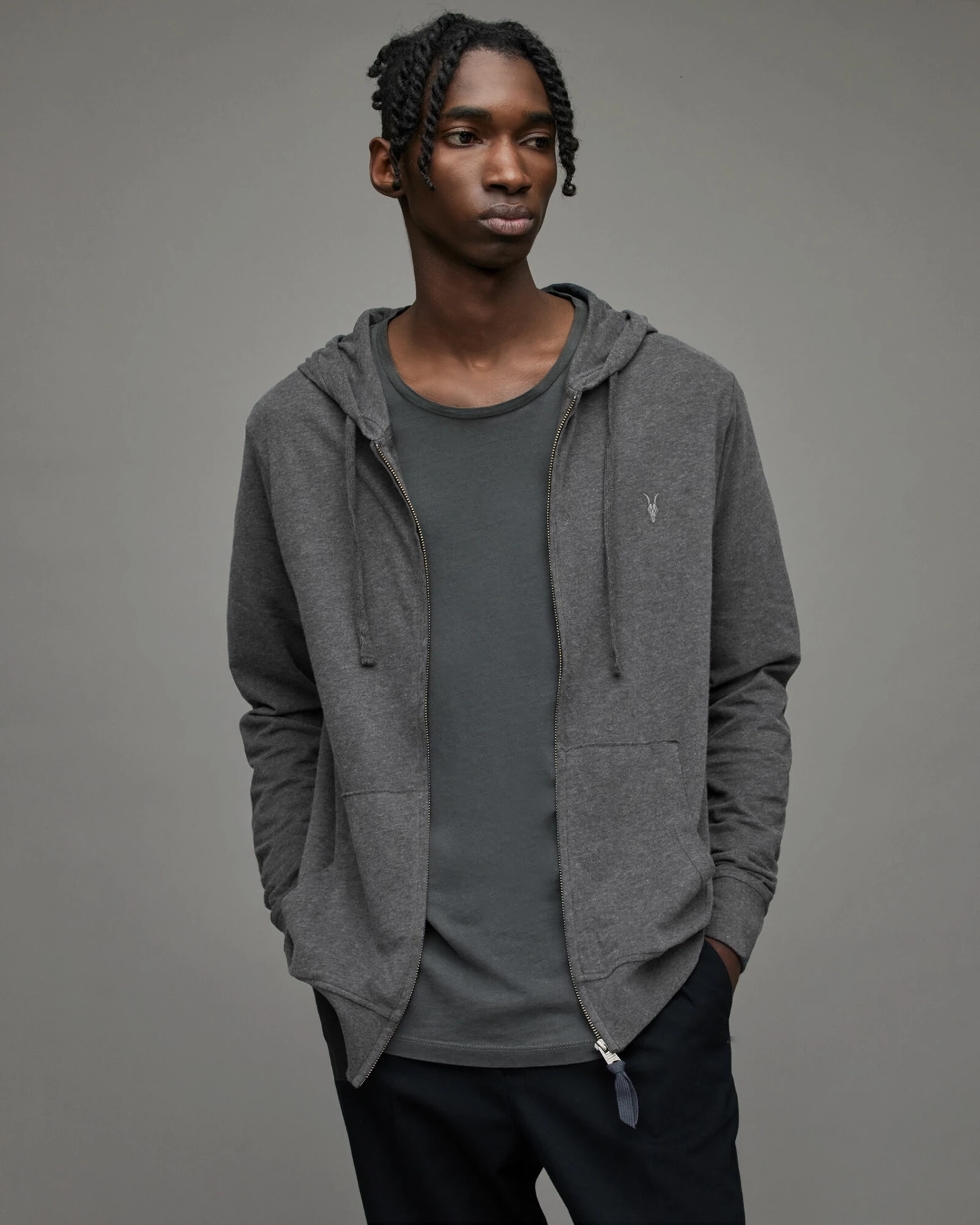The Brace Hoodie is crafted from a heavier weight cotton for this season. Finished with a hood that looks great layered under a leather jacket.