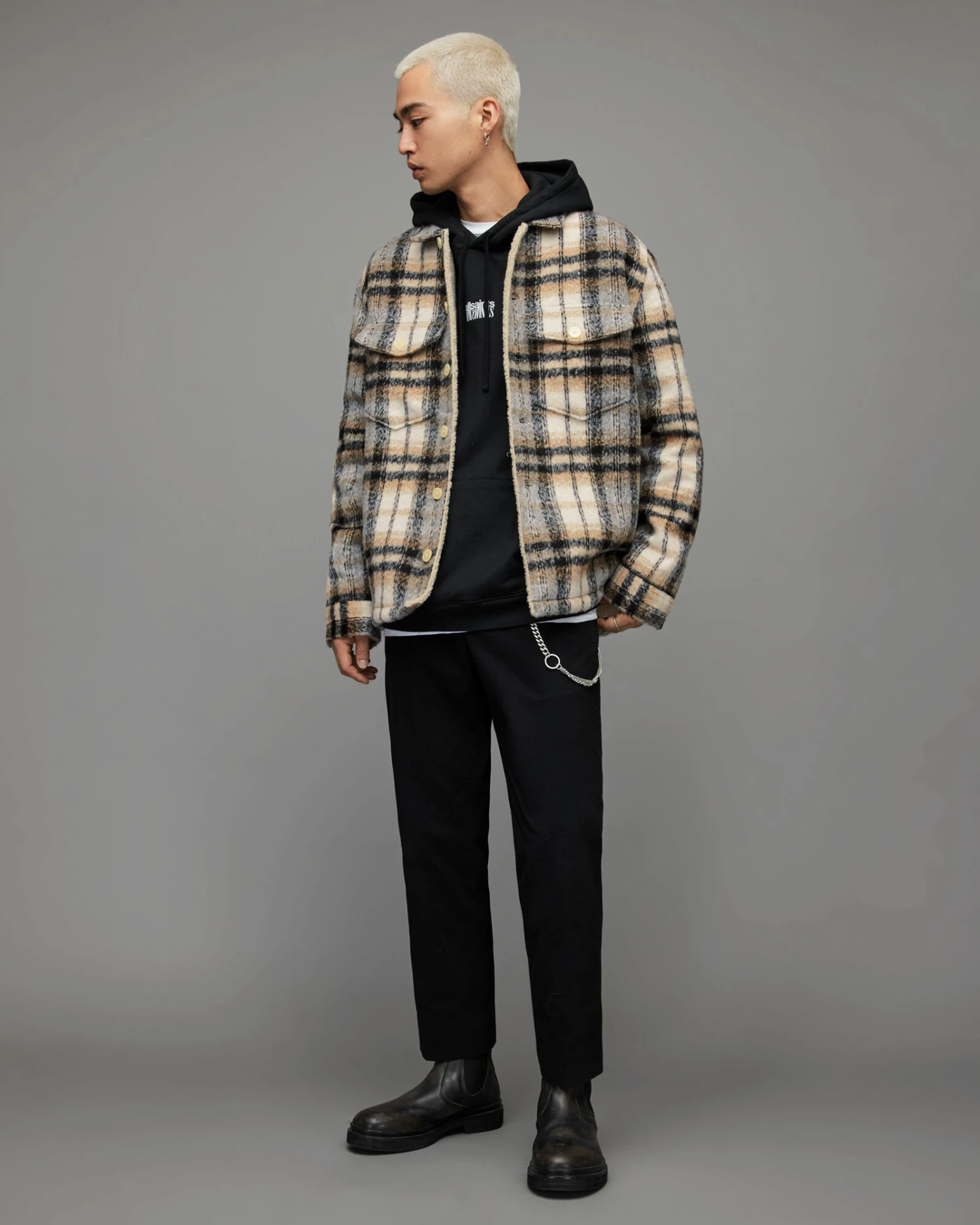 Overshirts are a styling essential. The Cayuga is relaxed with classic check and military pockets. The faux shearling lining makes it super cosy.