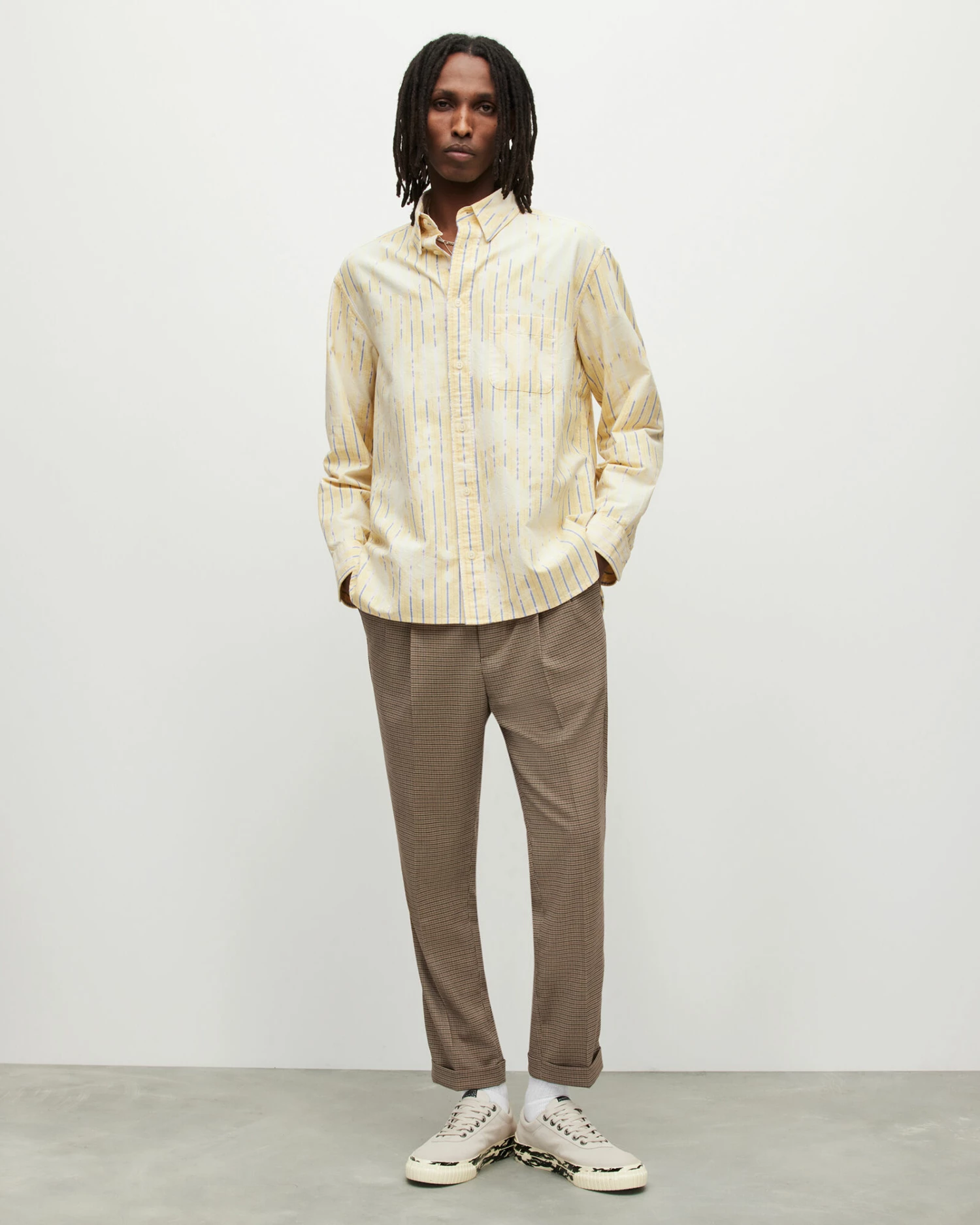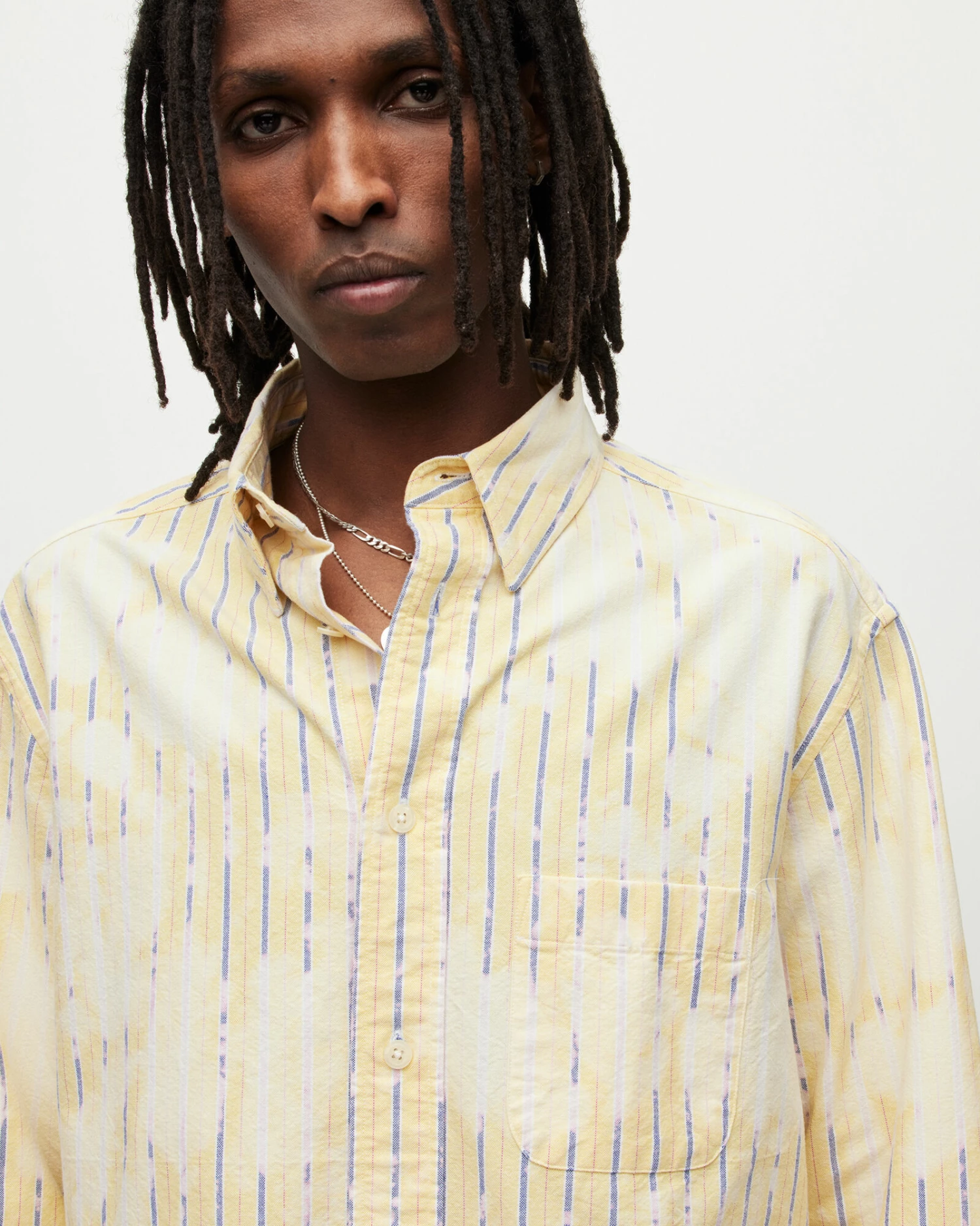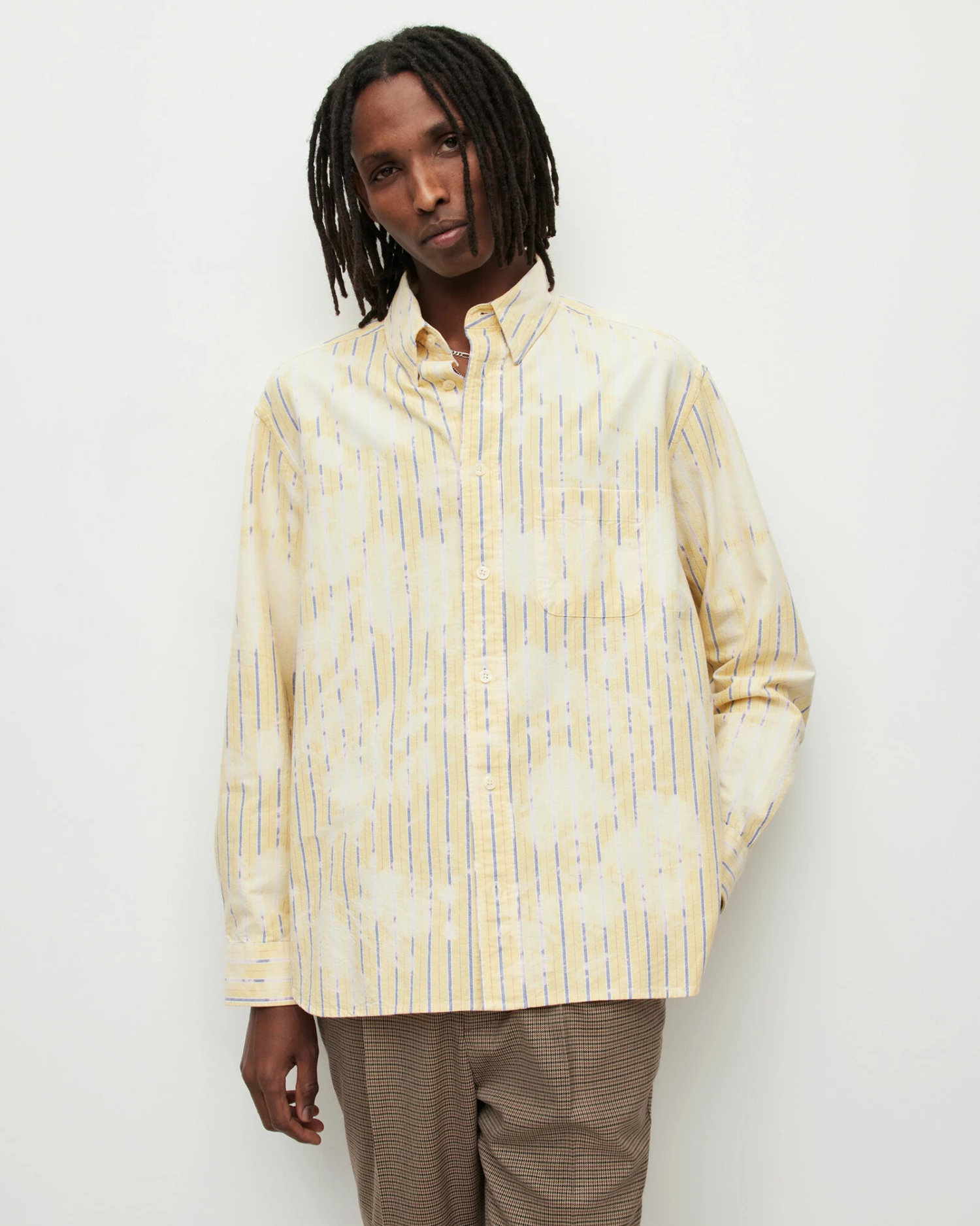 A modern take on a classic – that’s how we do things around here. The Crema Shirt has a signature Oxford shape, in an oversized fit. Smart pinstripes have been treated with an all-over bleached tie-dye effect. We’re mixing things up.