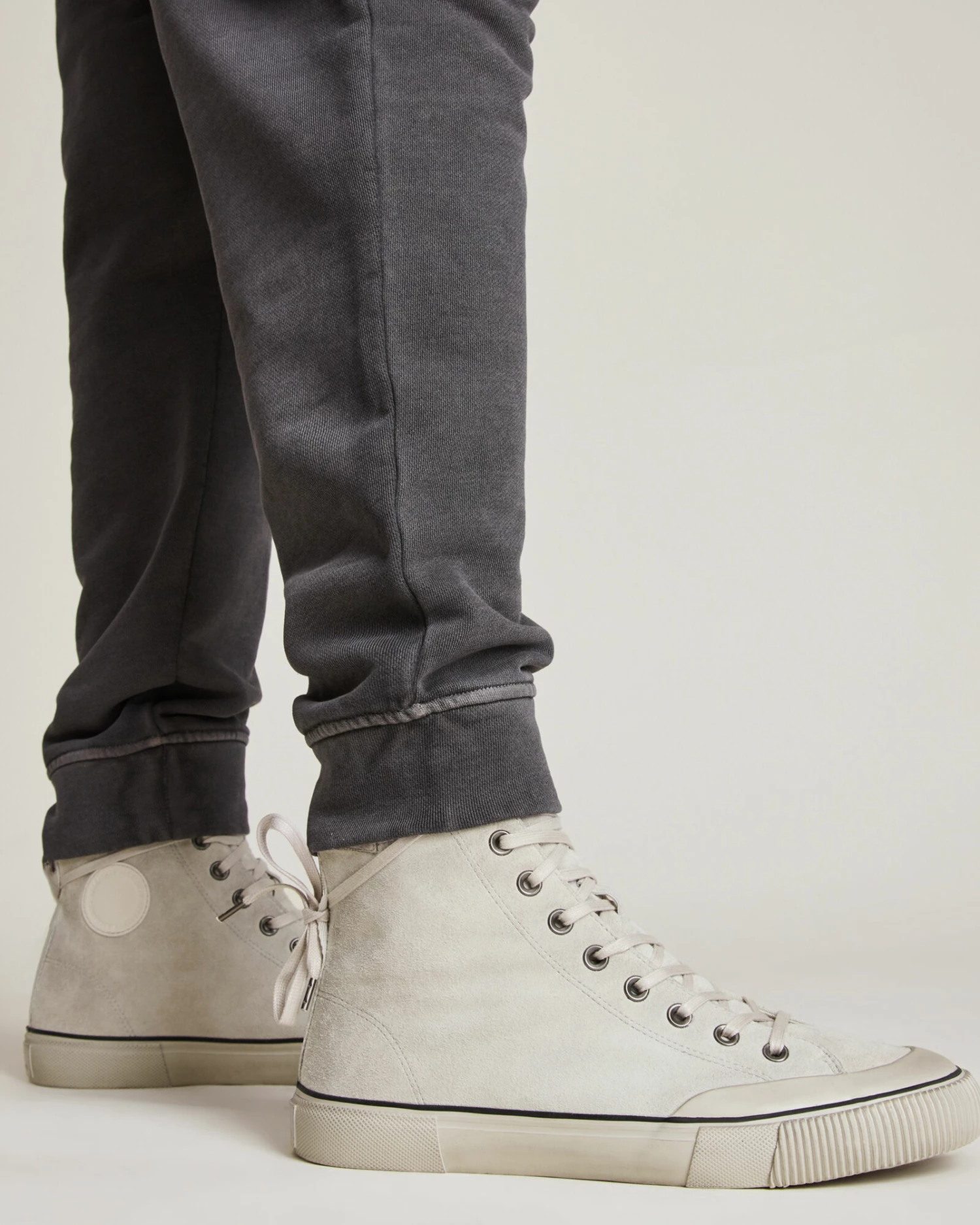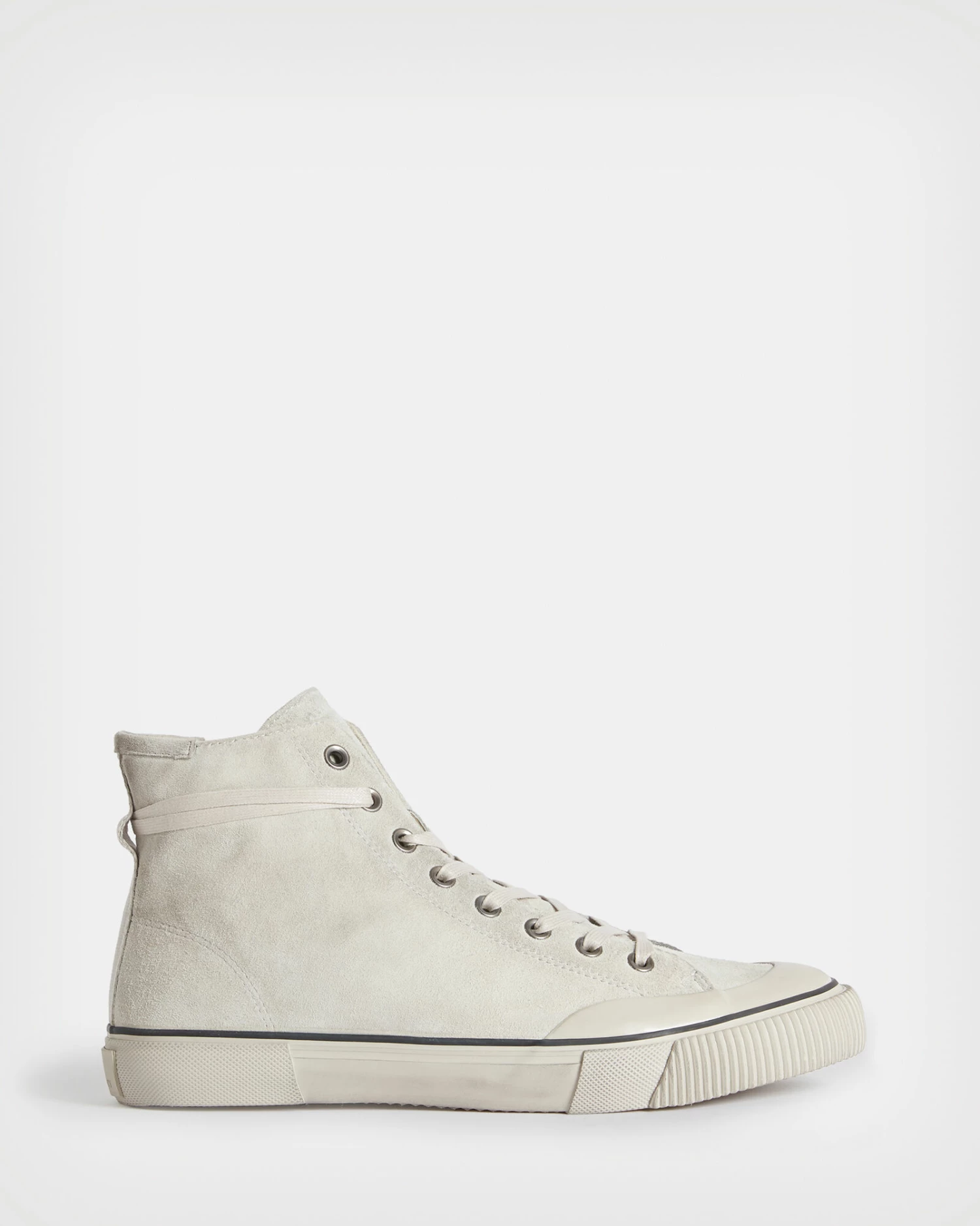 Worn-in aesthetic. The Dumont is crafted to a hightop silhouette with darker patches on the sole for a vintage finish. Tie the laces around the ankle for an AllSaints twist.