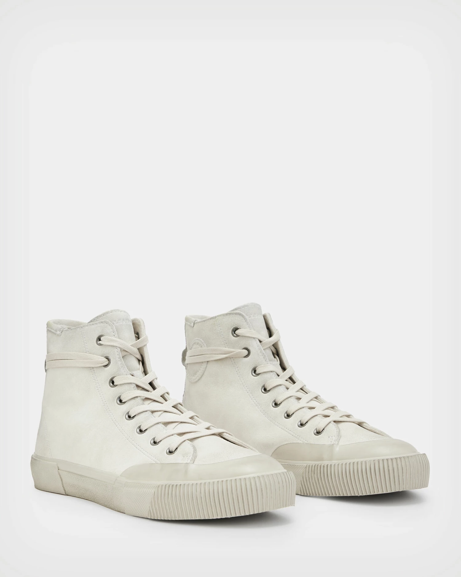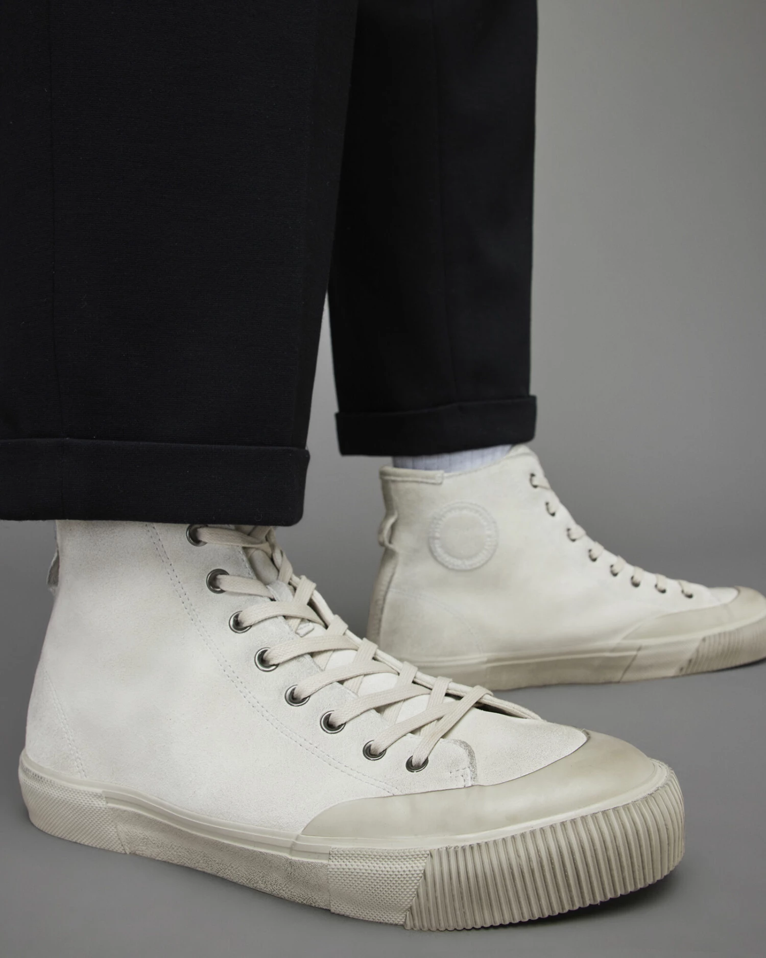 Worn-in aesthetic. The Dumont is crafted to a hightop silhouette with a vintage finish. Tie the laces around the ankle for an AllSaints twist.