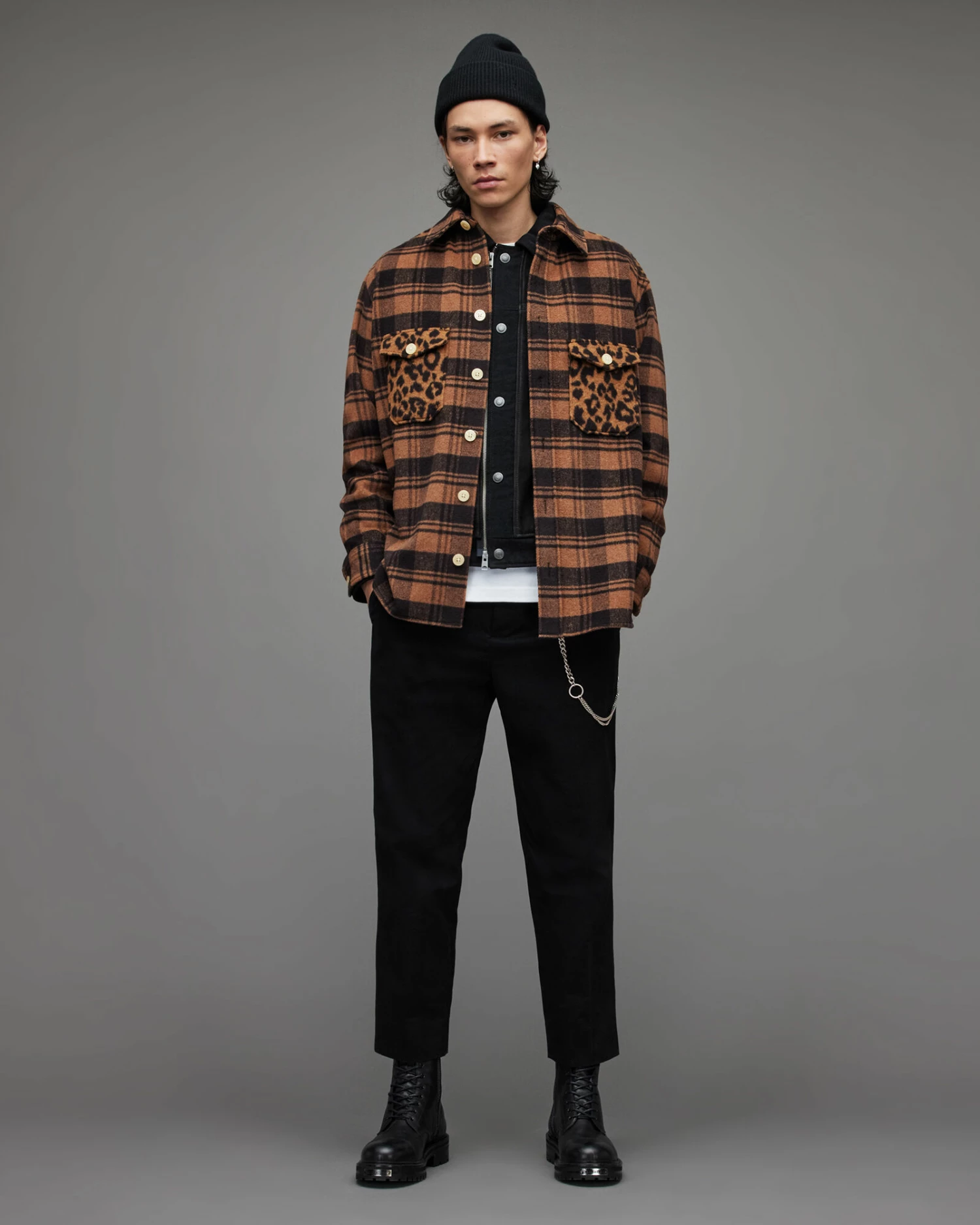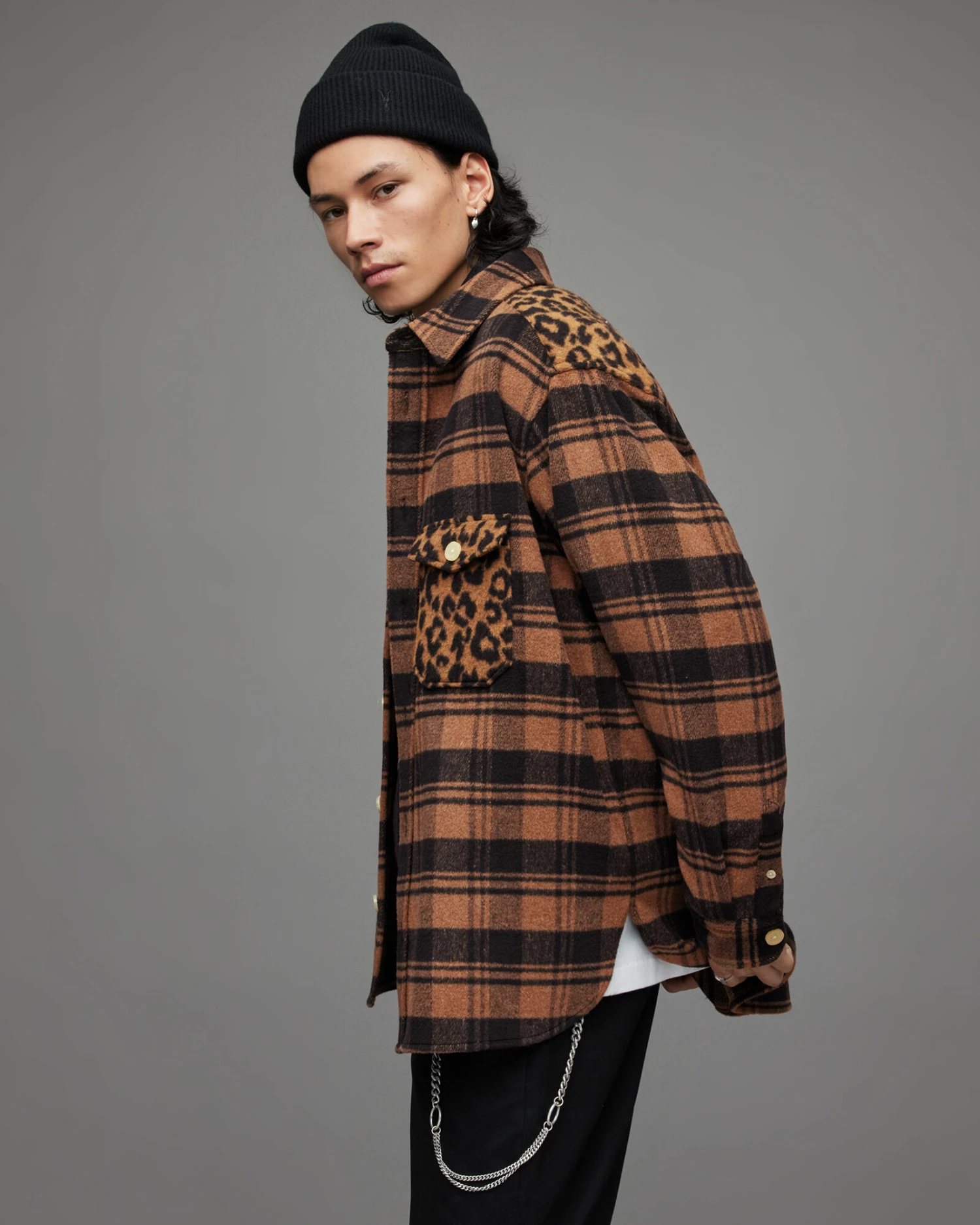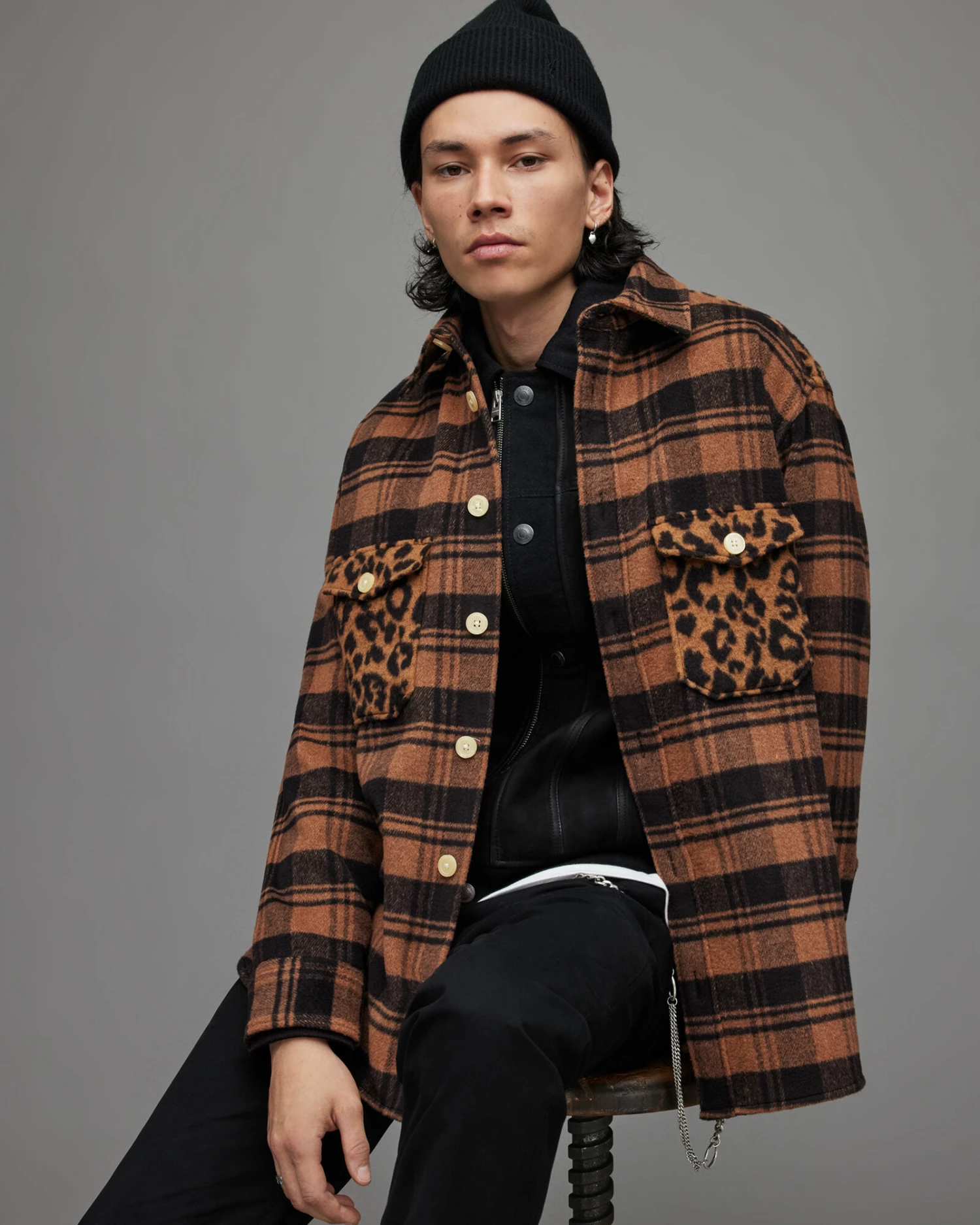 Mixing checks with leopard print – our favourites. The Glasco Shirt is a heavyweight and oversized. Keep warm with standout layers.