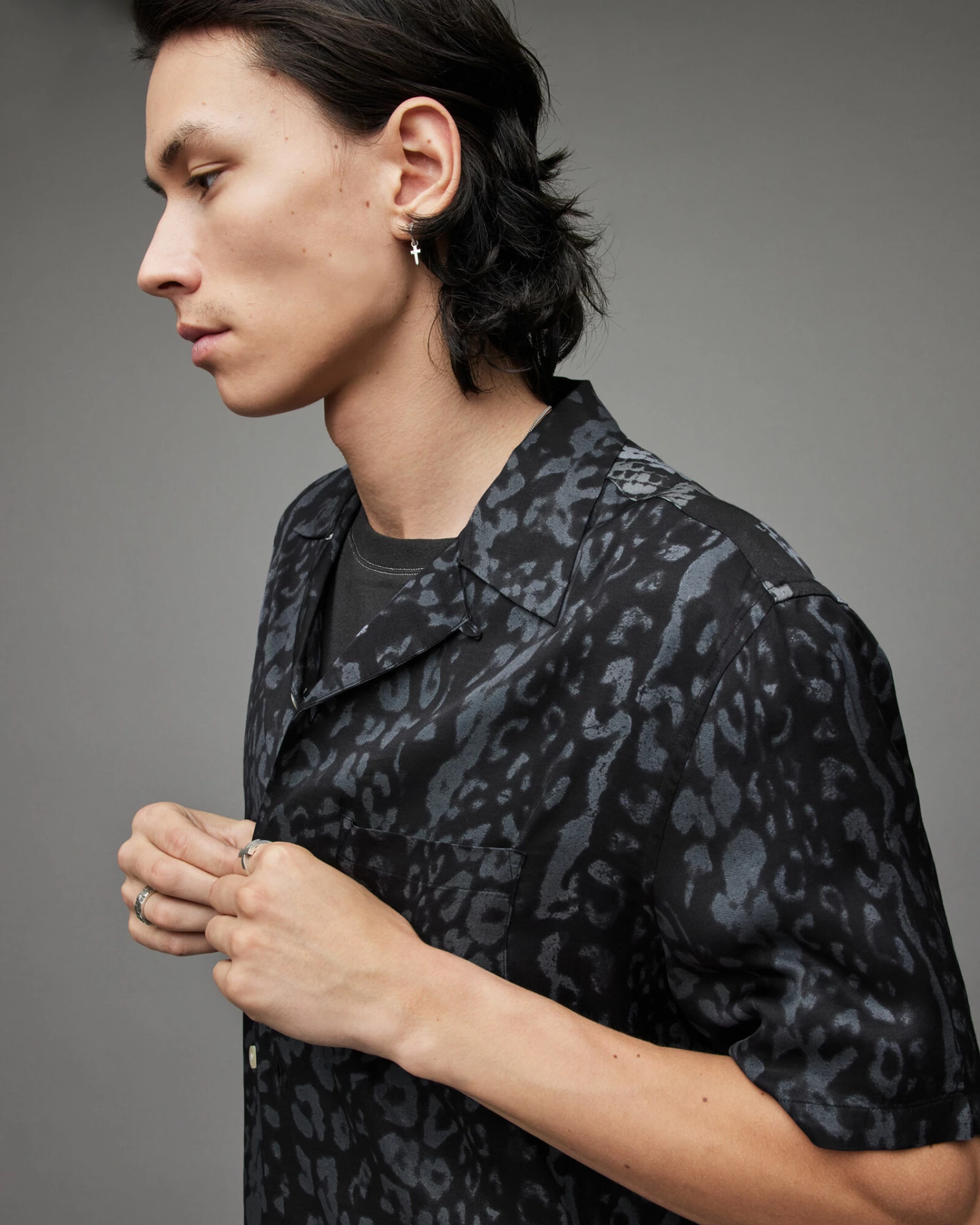 Make it contrast. The Gothen Shirt features a muted leopard print. On the back, snakeskin joins the party. It’s relaxed fitting with our signature camp collar and chest pocket. Made to stand out.