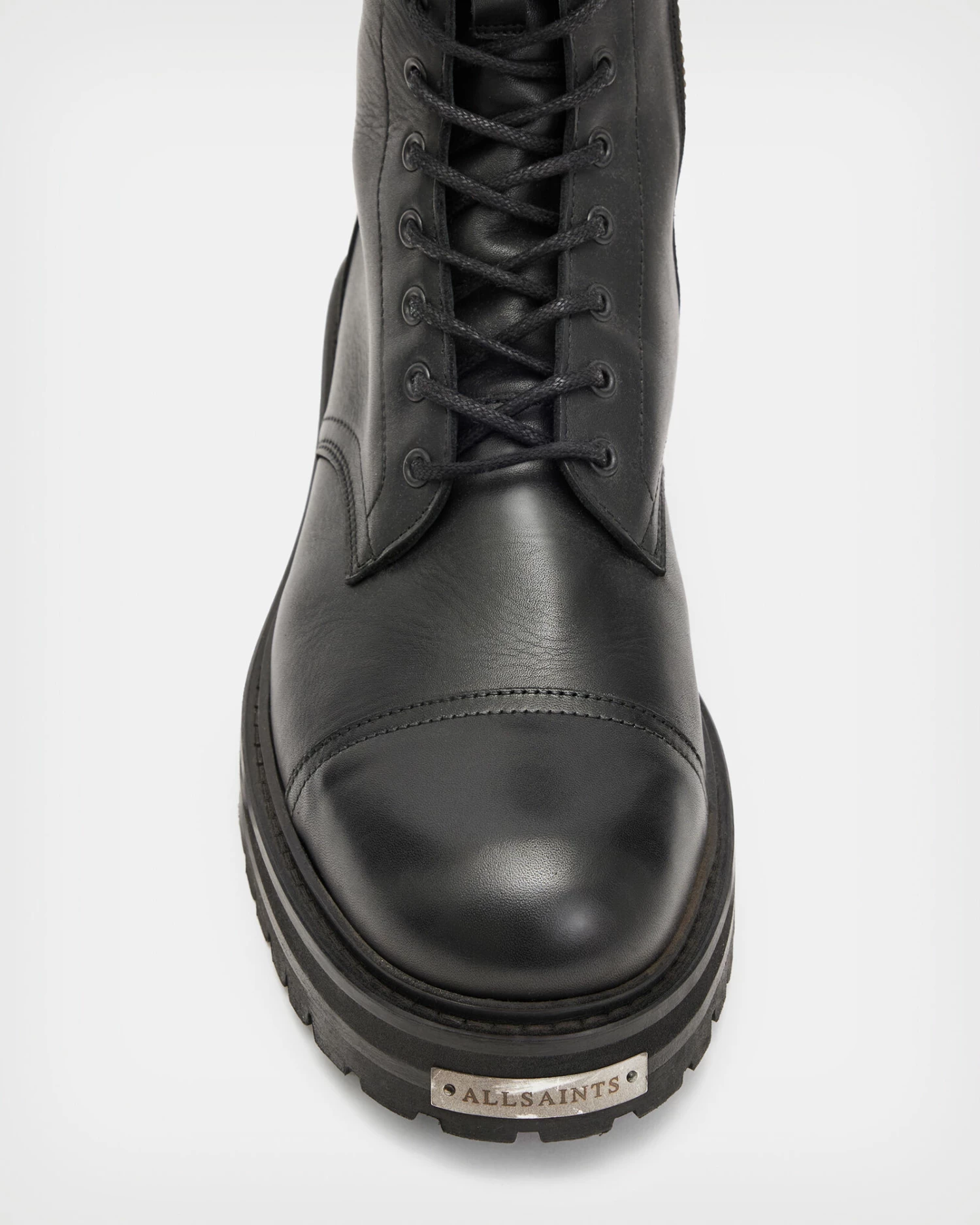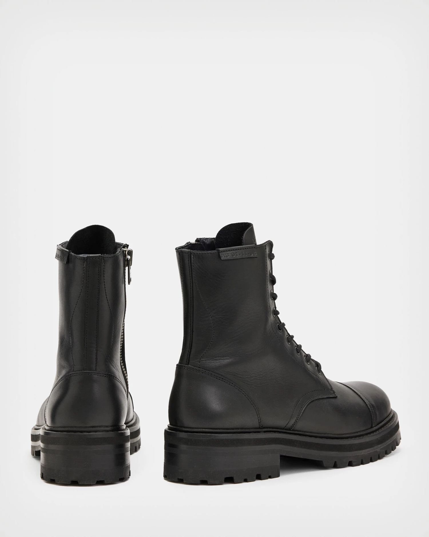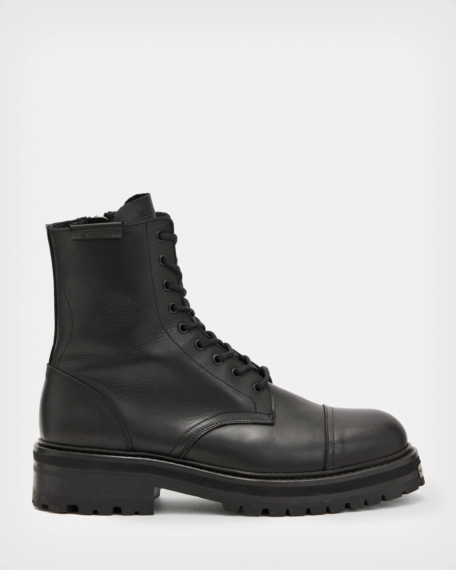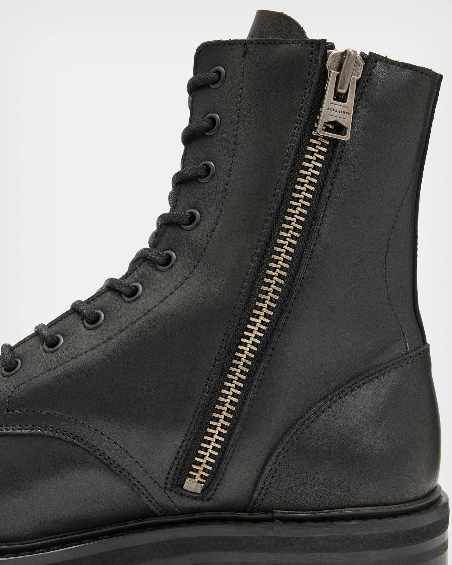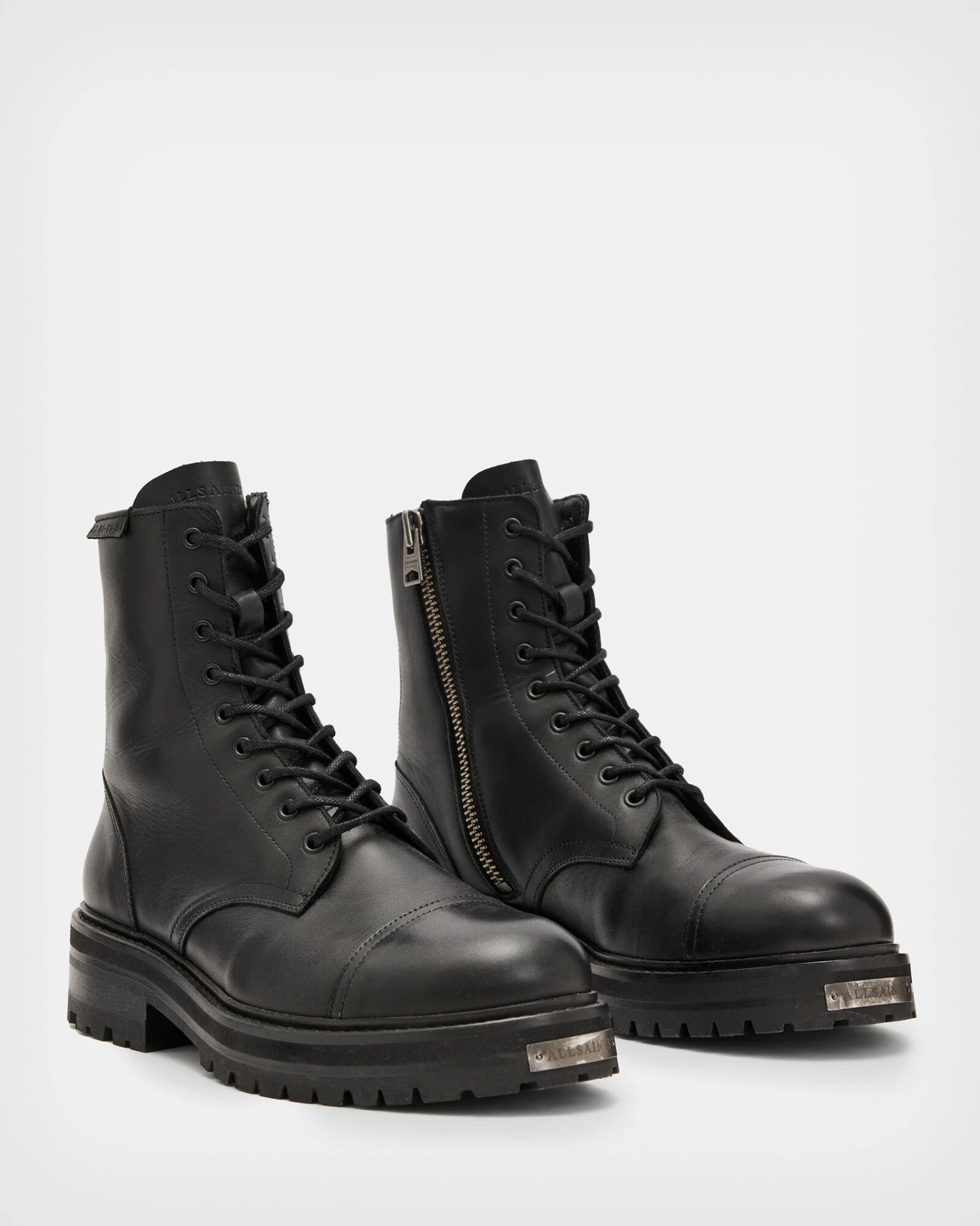 The Hank Boots have that vintage feel. Classic 8 eyelet lace up with round toe shaping. They are crafted from leather with an AllSaints metal insert in front of the sole.