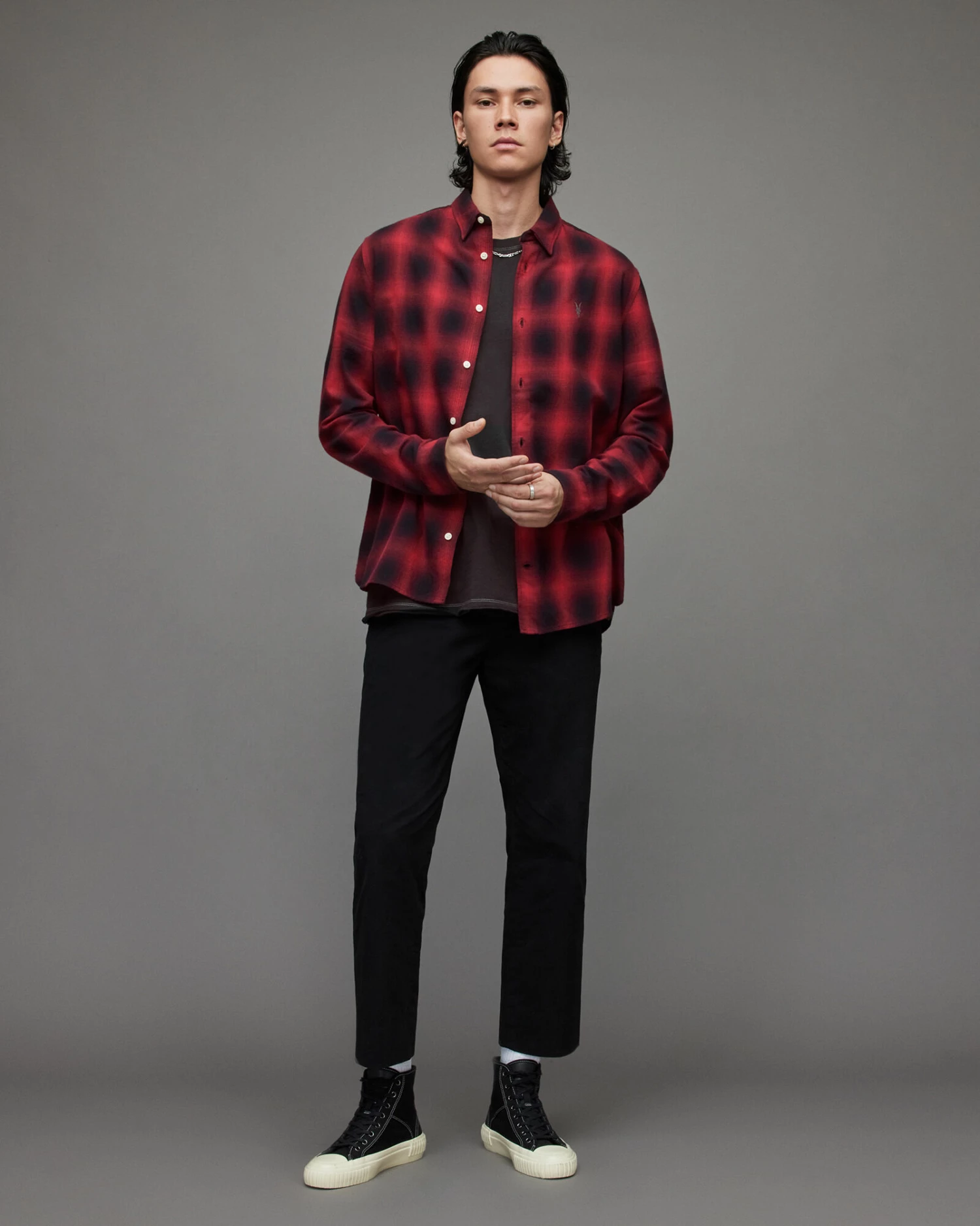 Checked shirts. They’re one of our favourites. This is the Hoboken. The cotton twill texture features classic checks and our Ramskull embroidery. It’s relaxed fitting, for easy styling.