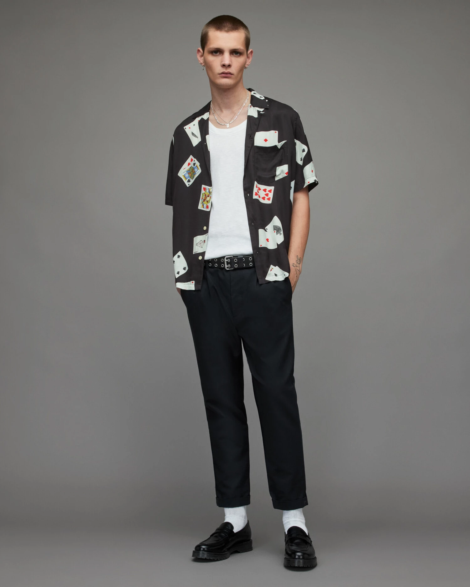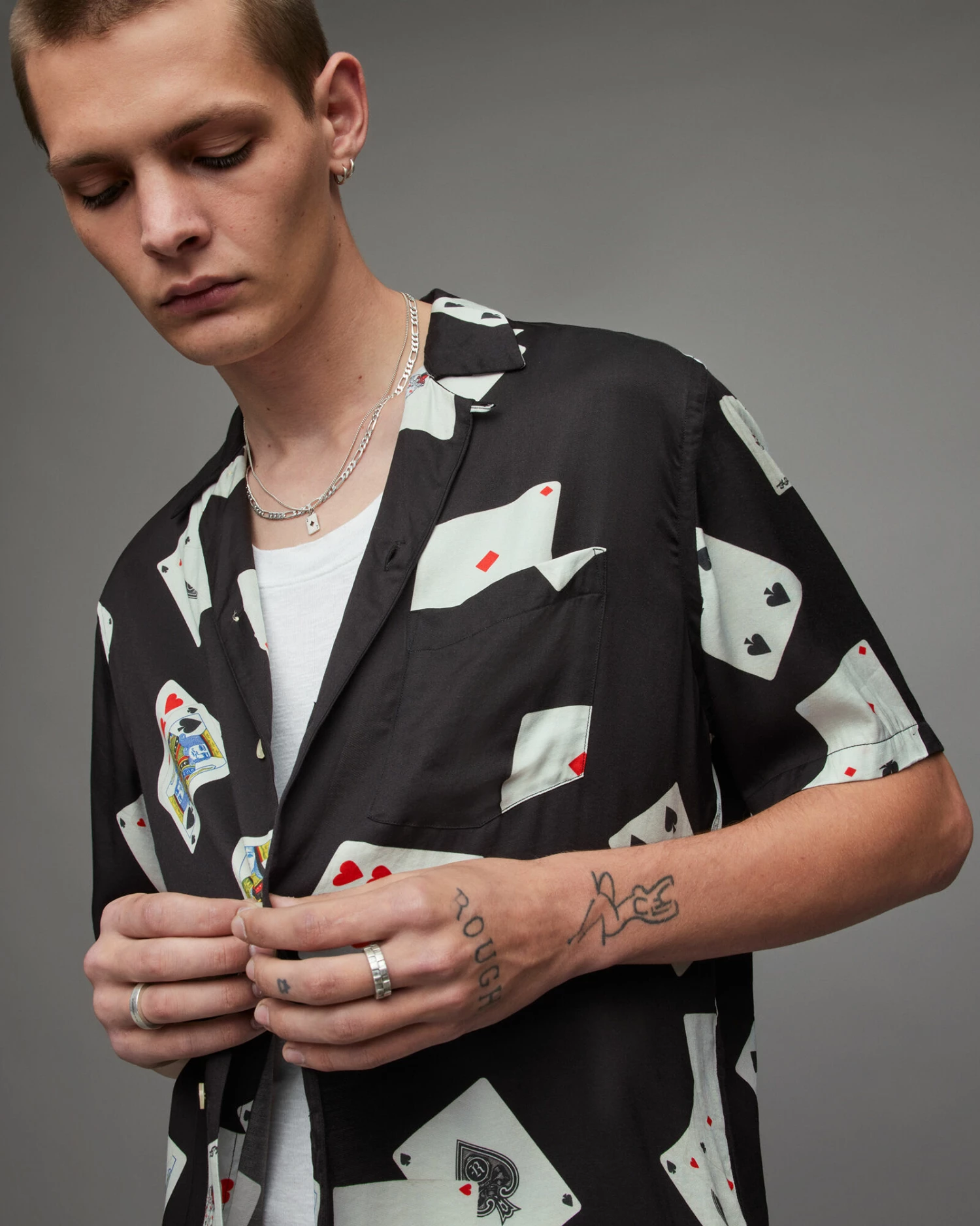 We’re not playing with the Holdem Shirt. Shaped to a relaxed fit with our new card-theme graphic all over. Completed with a camp collar and chest pocket – it works.