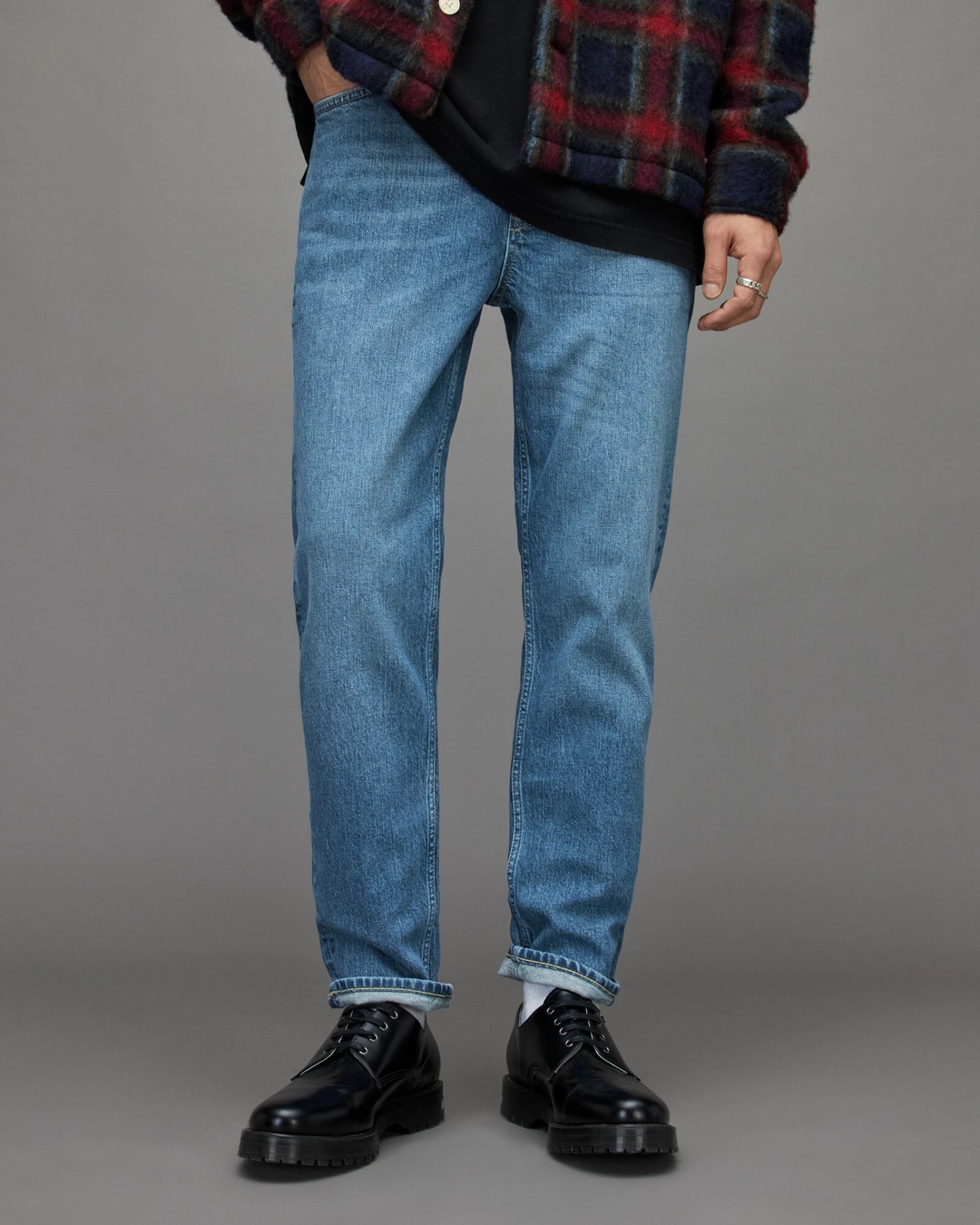 The Jack Jeans. They’re a staple in our denim collection. Made from cotton in a bright indigo hue. The denim is shaped to a tapered fit with a cropped ankle.