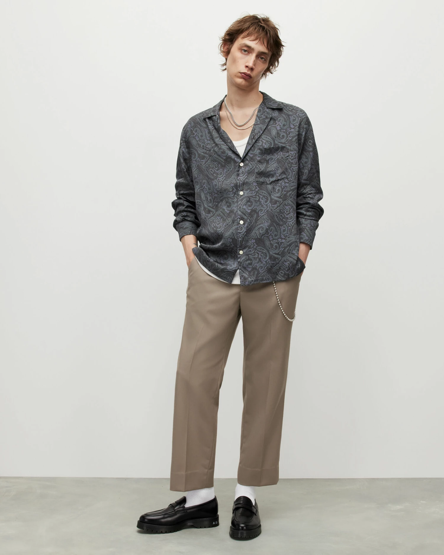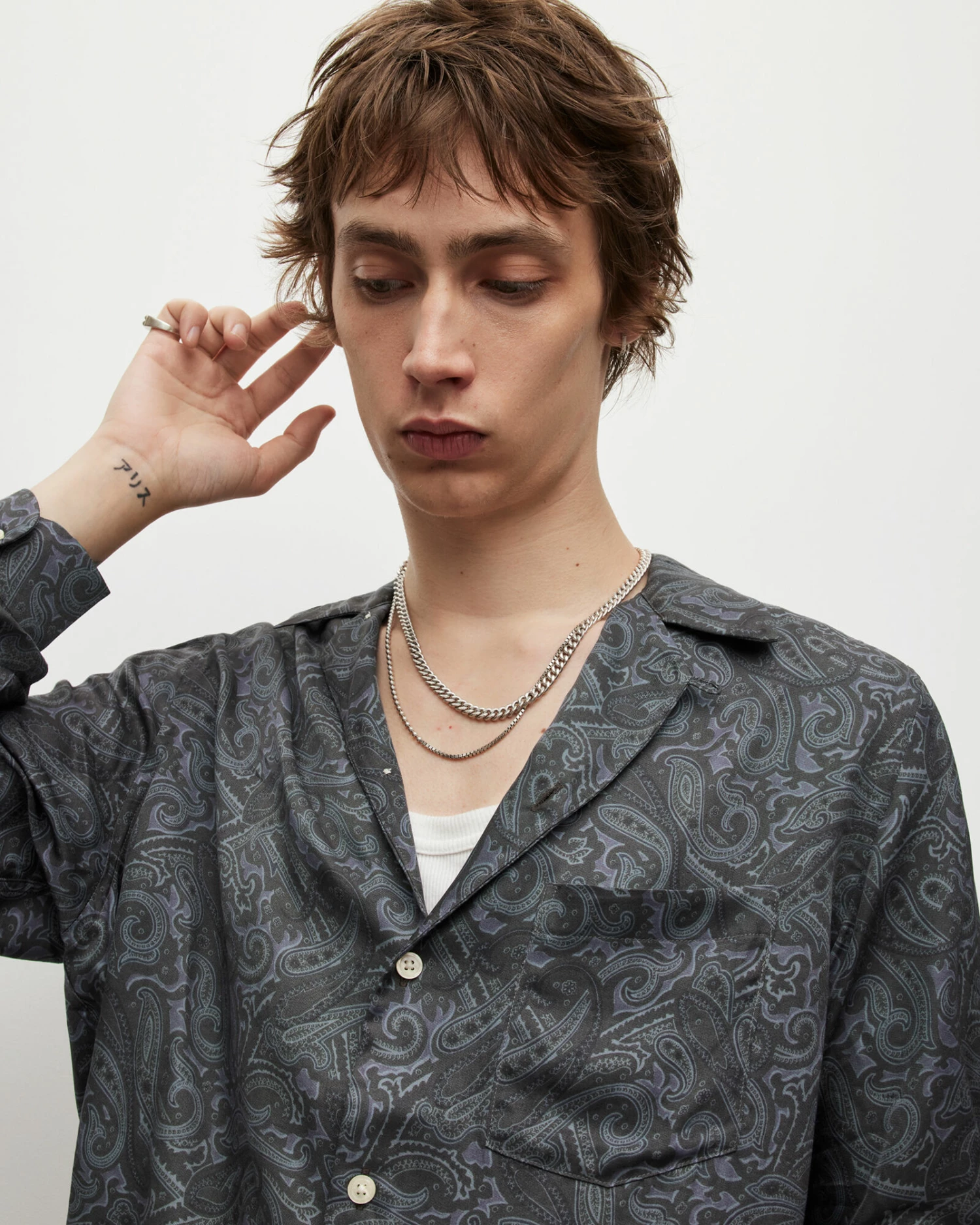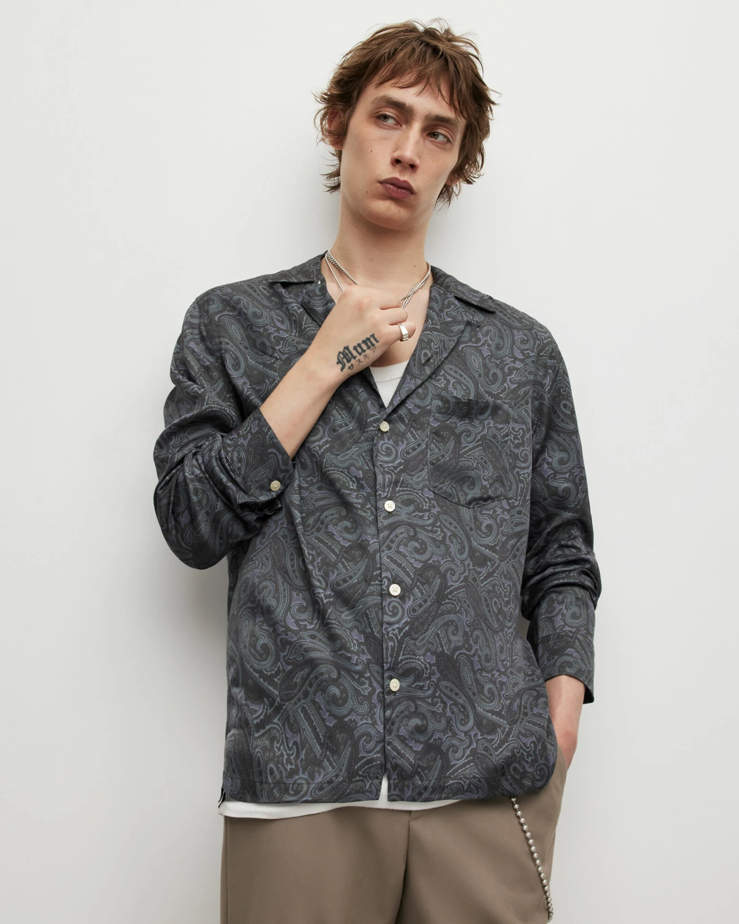 Let’s get nostalgic with paisley prints. This is the Nidaros Shirt. Shaped to a relaxed fit in a lightweight, easy fabric. With long sleeves and a camp collar, layer it up this season.