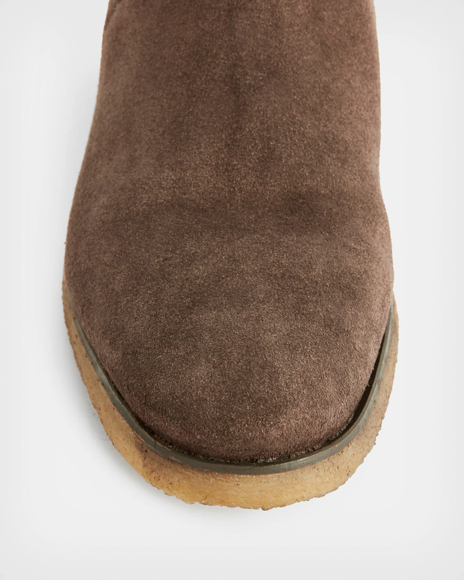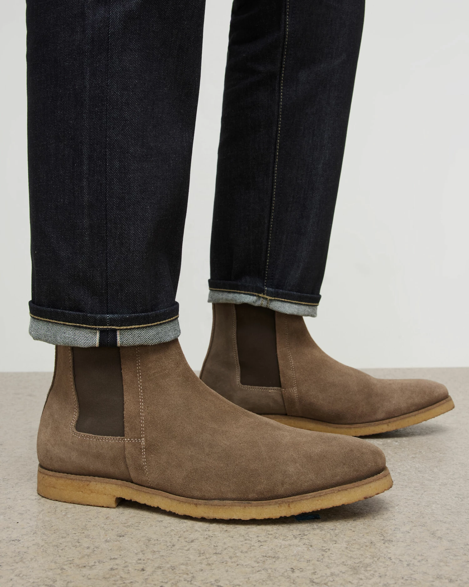 For casual occasions. Step out in the Rhett Boots. Crafted from soft suede. And finished with a crepe rubber sole. Shaped to a traditional chelsea boot silhouette.