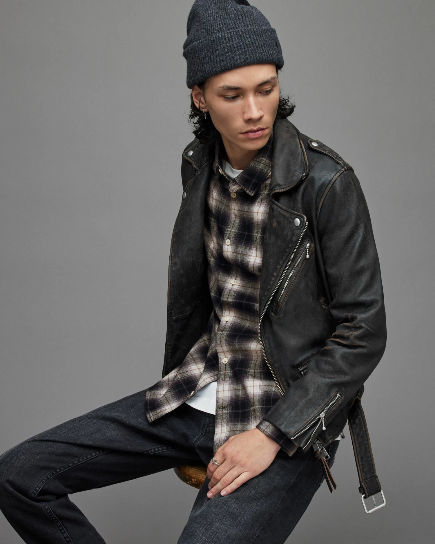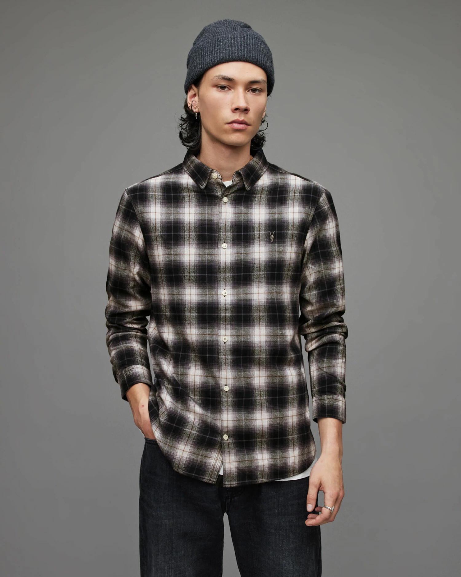Try laidback checks with the Selwyn Shirt. The brushed cotton is checked. With long sleeves and a classic collar – our Ramskull is on the chest.