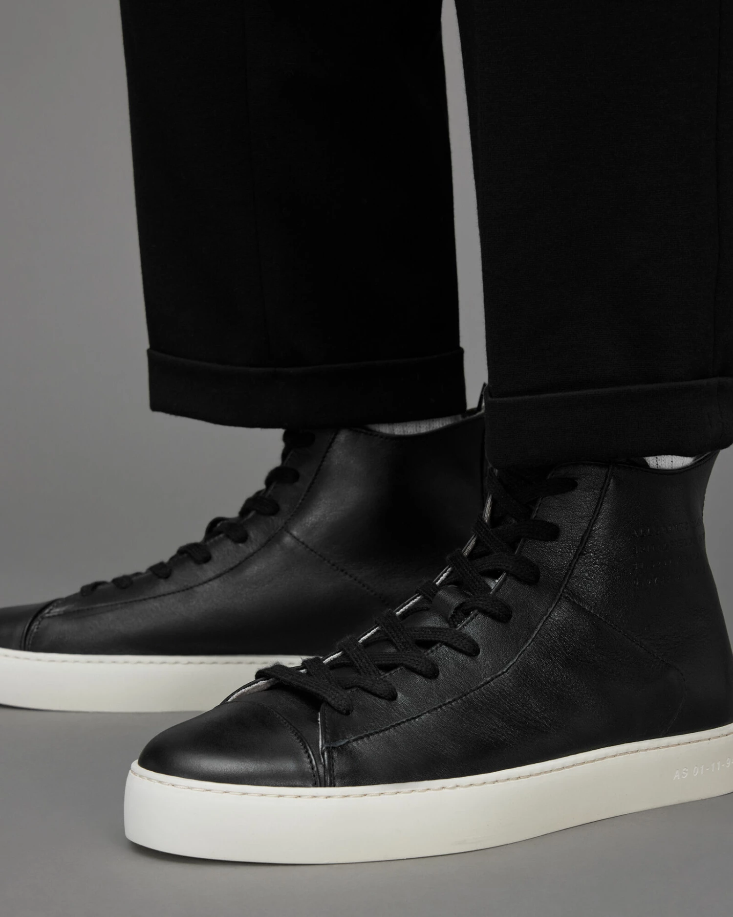 The Slone High Tops will be with you for casual dressing. Crafted from leather, this lace up style features a rubber cupsole. We’ve put our birth date on the sole – 01-11-94, it’s lasered.