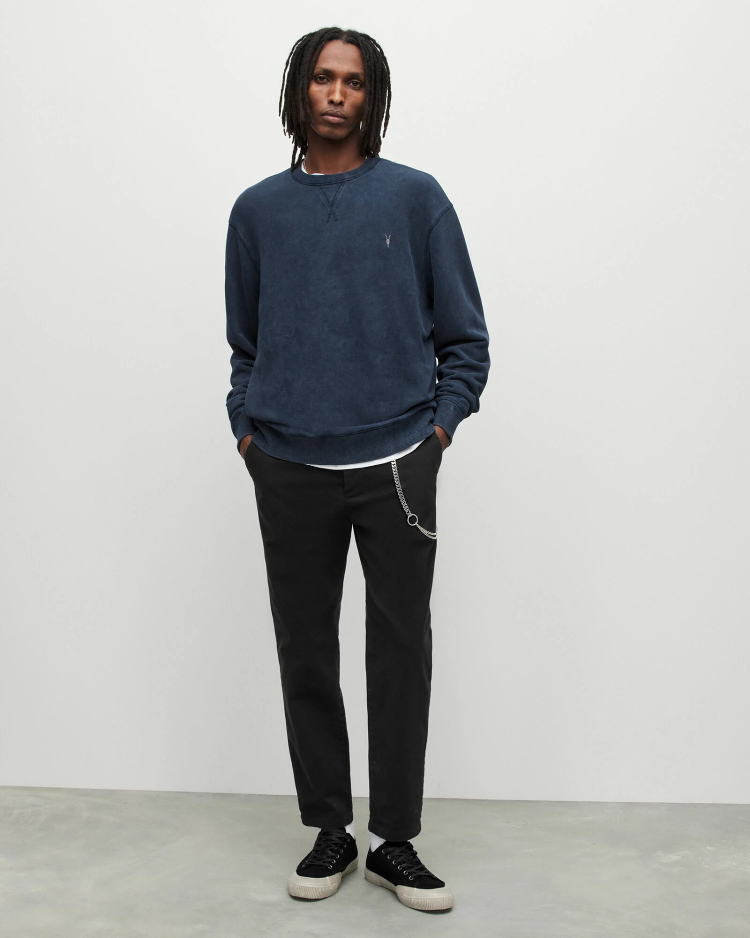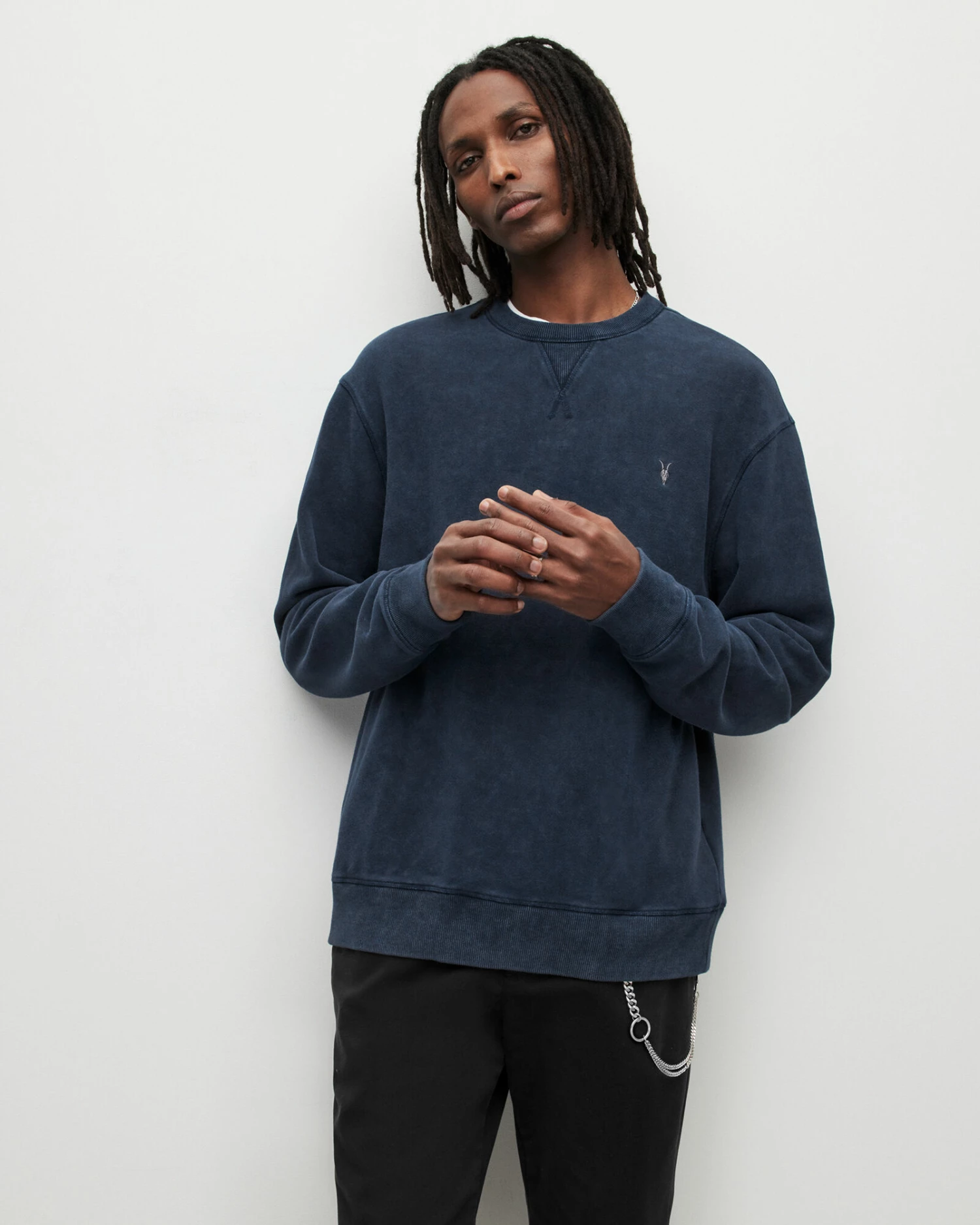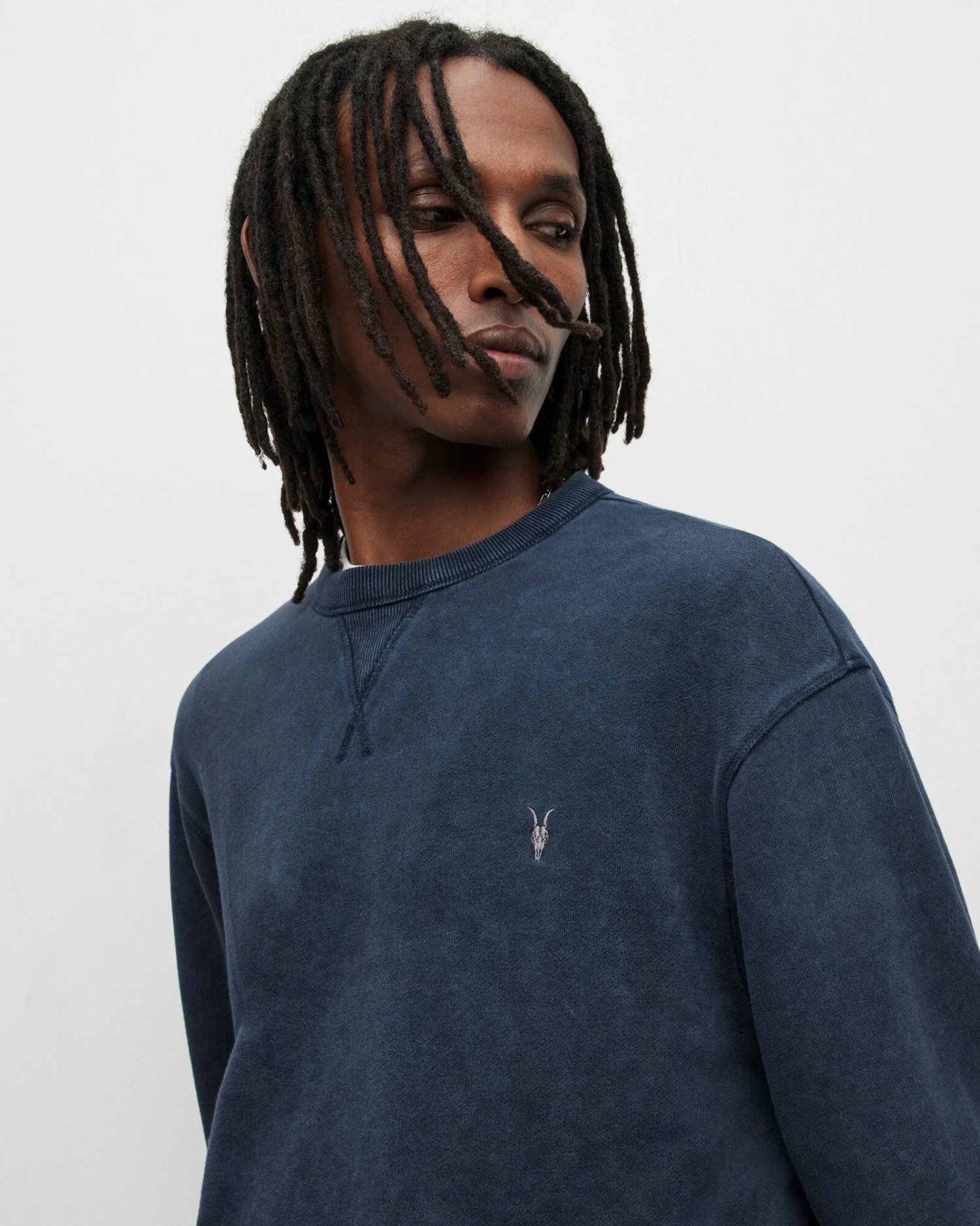 Lounge about in style. The Sonny Sweatshirt is crafted from organic cotton. Finished with a mottled effect and ribbed trims. Coverstitch detailing is the perfect contrast while our Ramskull sits on the chest.