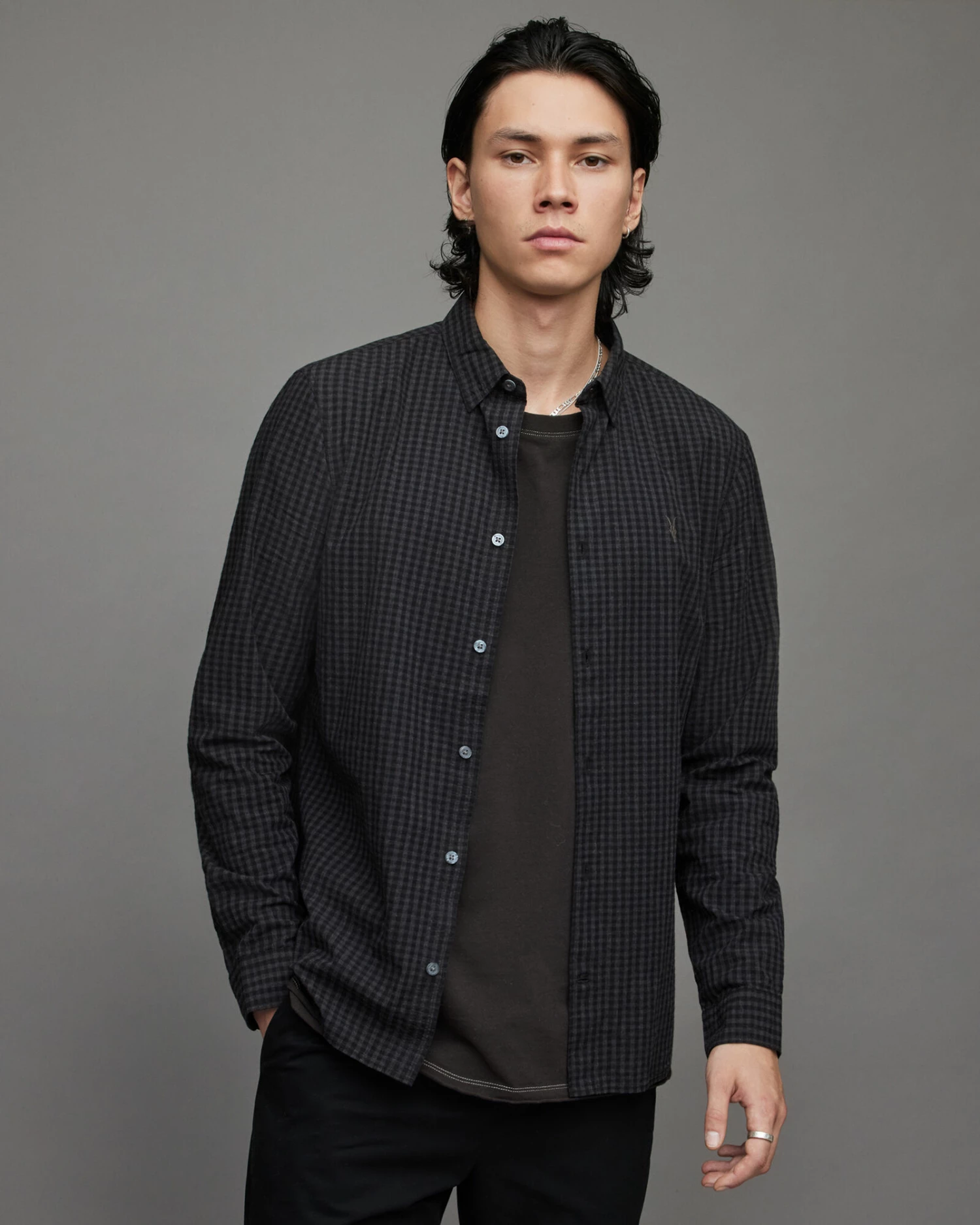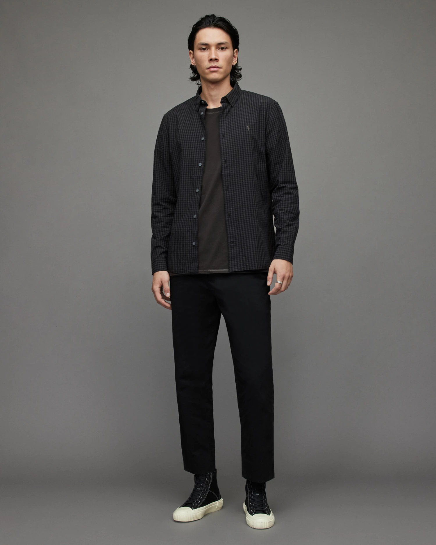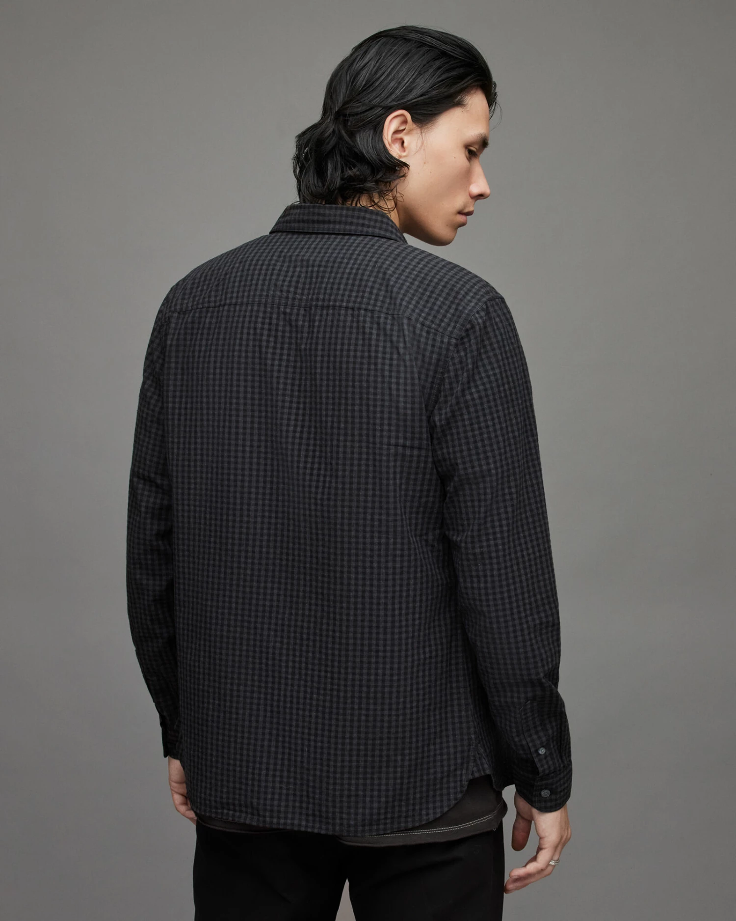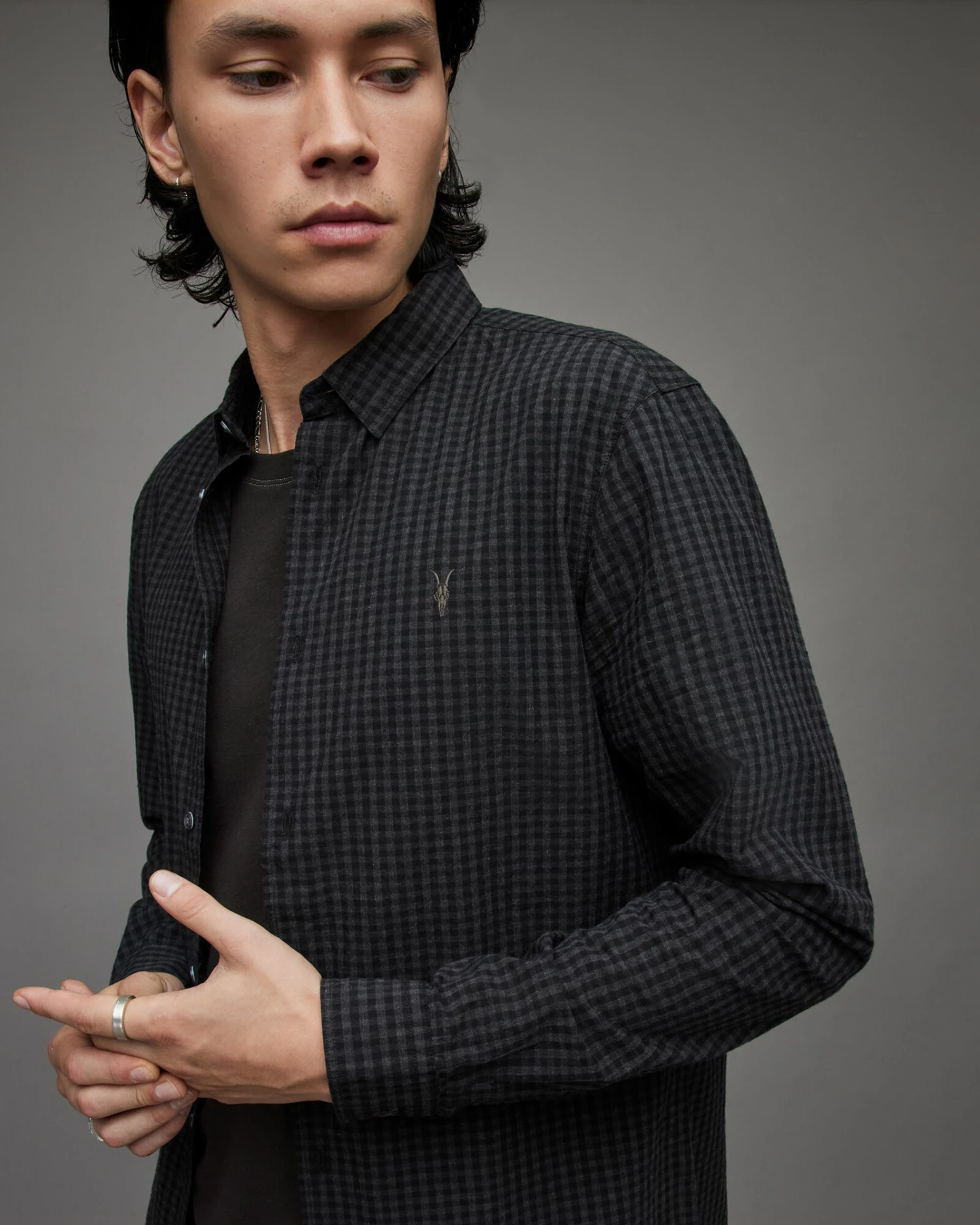 Blacked out checks. The Staten Shirt is covered in smallscale checks with a heathered yarn texture. Made from organic cotton and relaxed fitting – find our Ramskull on the chest.