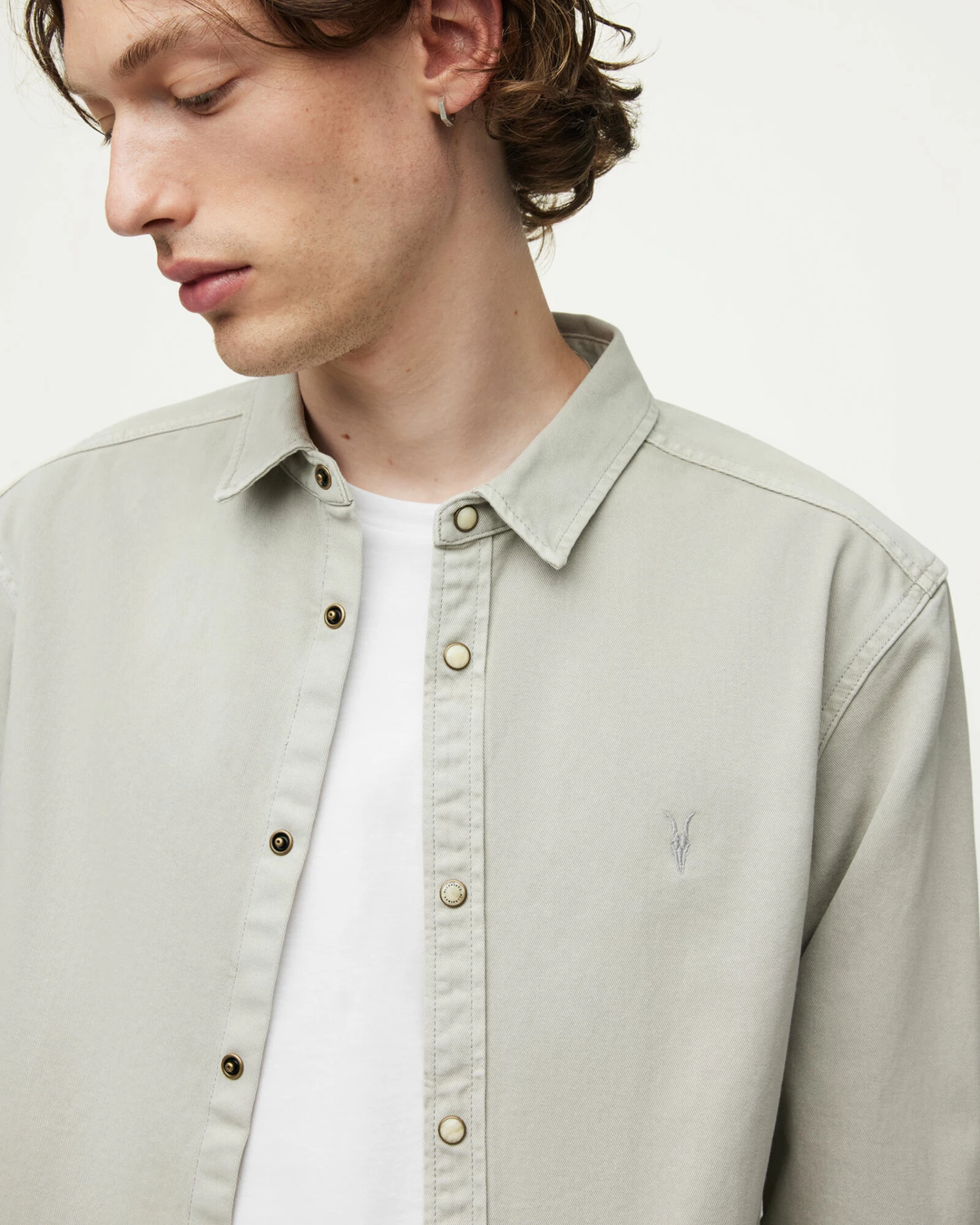 Your new smart option. Meet the Staveley Shirt. The cotton twill fabric is part recycled. With a press stud closure to make it a bit different. It’s completed with a classic collar and our Ramskull embroidered on the chest.