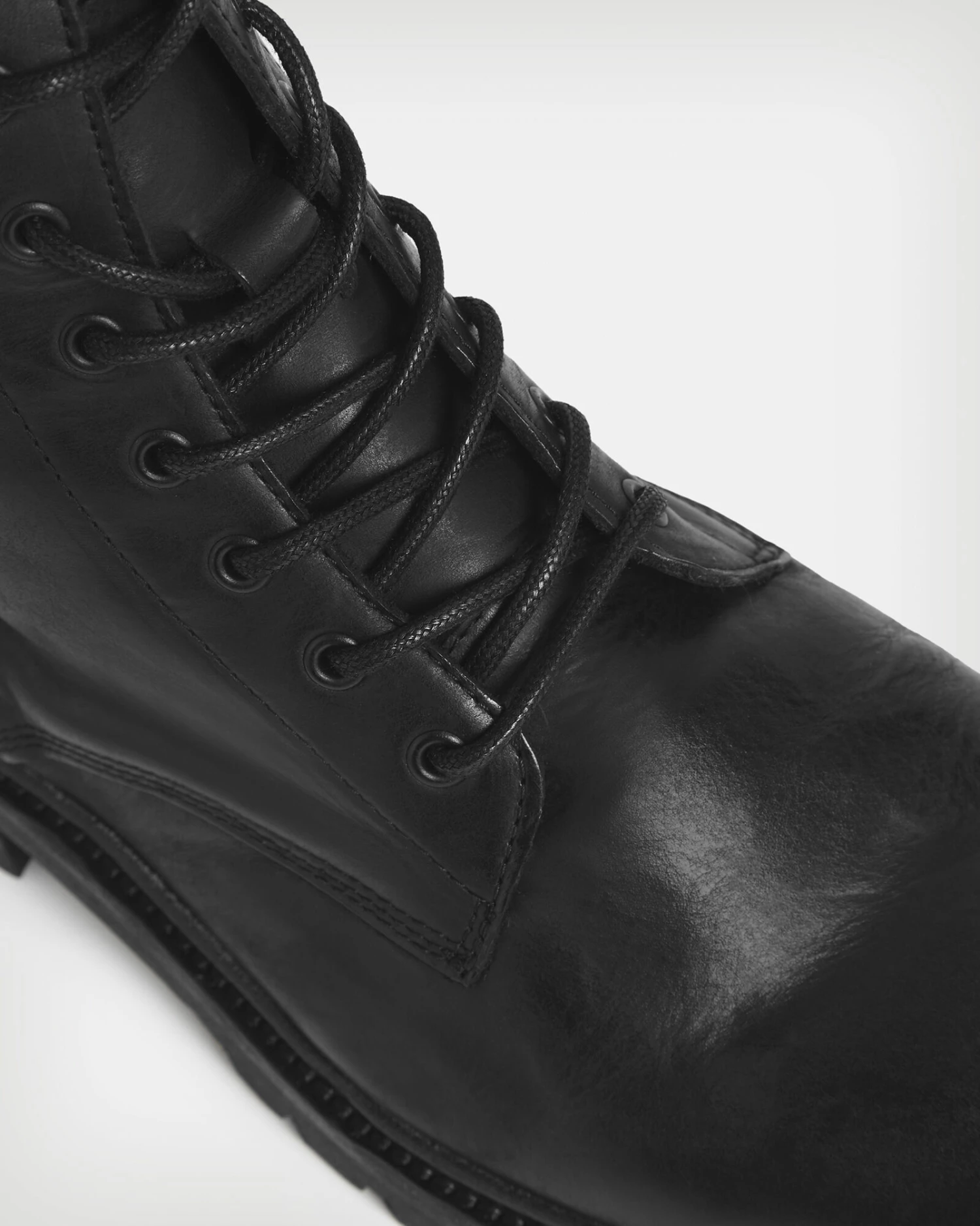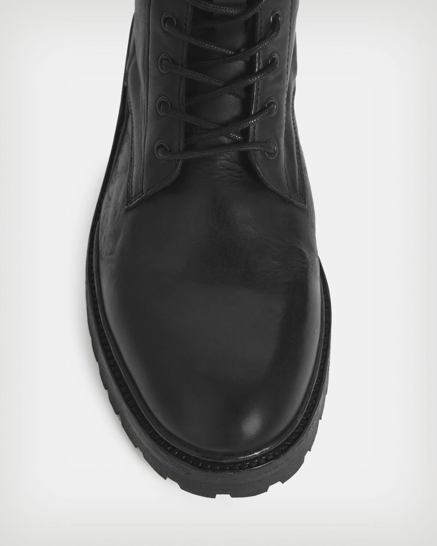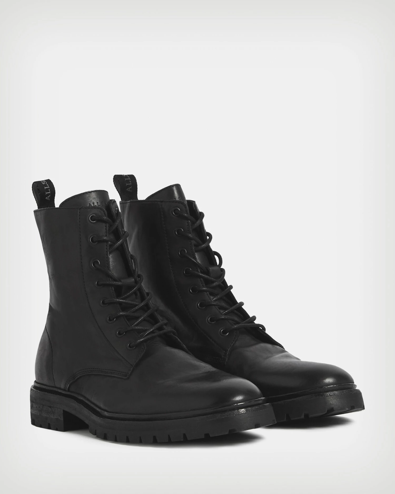 Any weather, anywhere. The Tobias Boots are a seasonal staple. Crafted from smooth leather in a classic military boot shape with a lace up front and sleek sole.