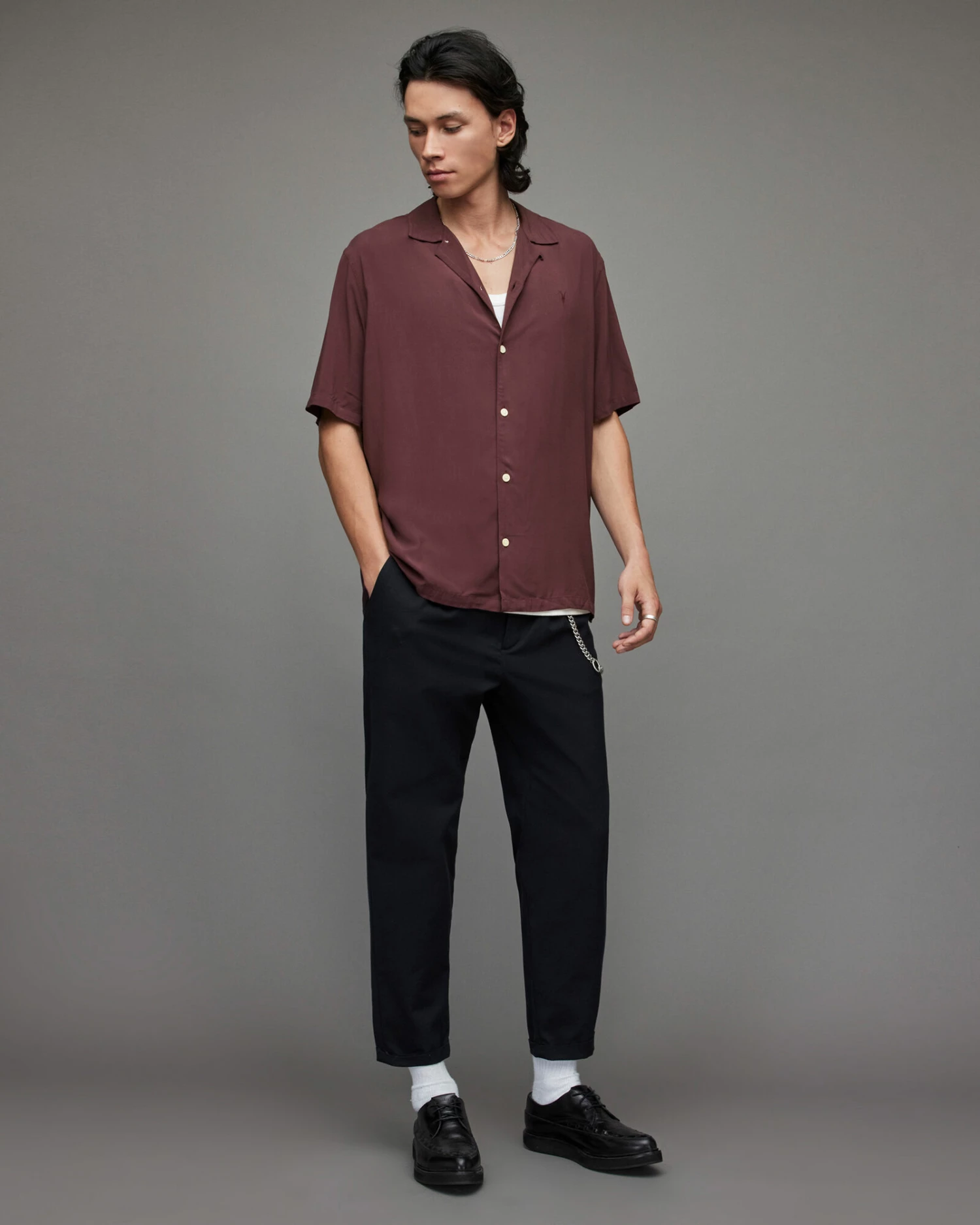 Look closely, our Ramskull is there, embroidered on the chest. This is the Venice Shirt. Short sleeves, camp collar, relaxed fit.
