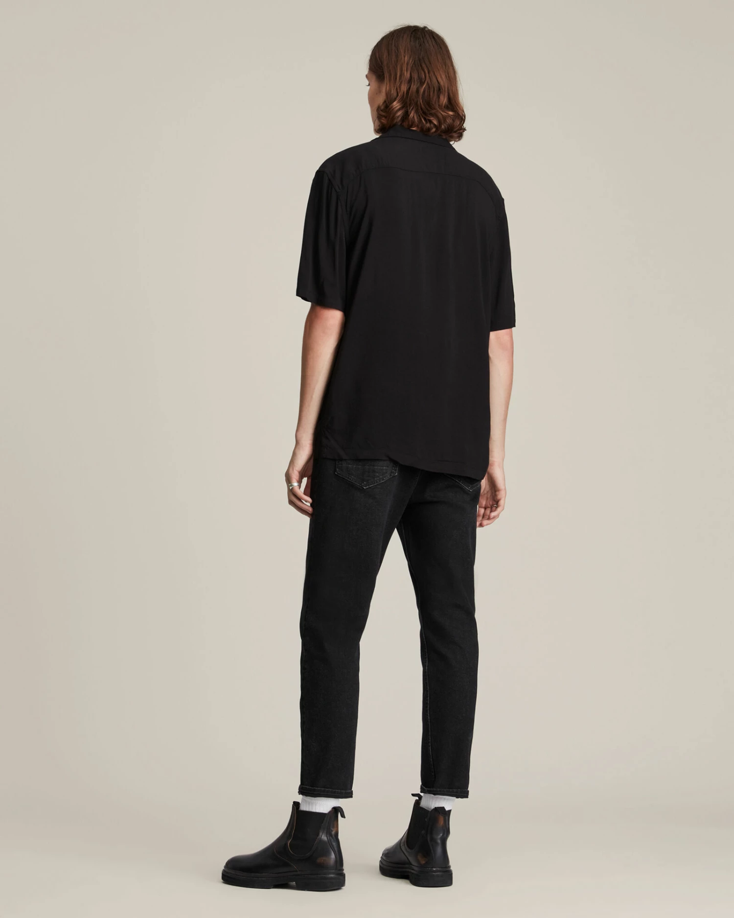 Look closely, our Ramskull is there, embroidered on the chest. This is the Venice Shirt. Short sleeves, camp collar, relaxed fit.