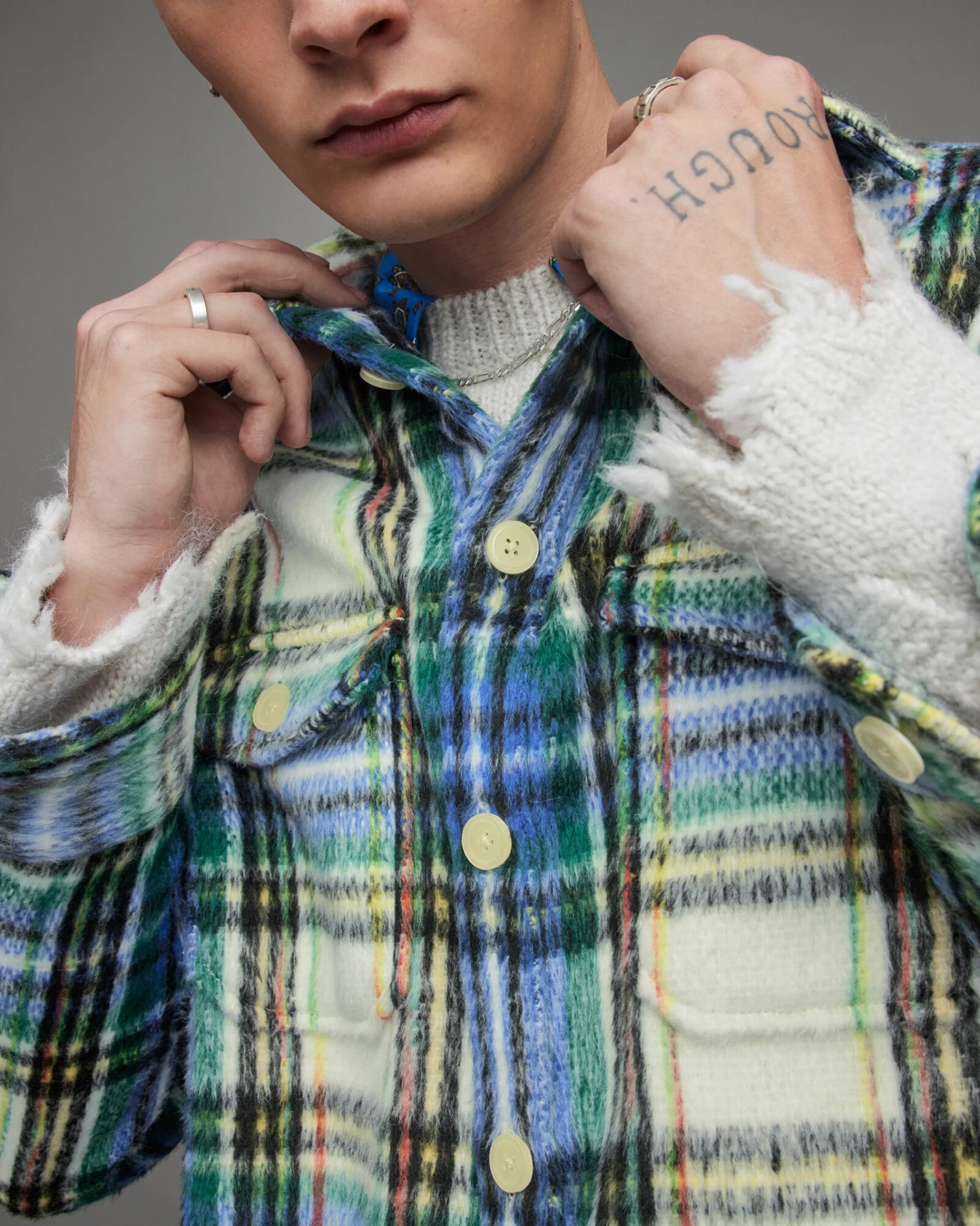 This is Yonkers. A classic AllSaints shirt. A wool mixed base shaped to an oversized fit. Vintage-inspired checks and miltary style pockets give it an authentic feel – we come back to it every time.